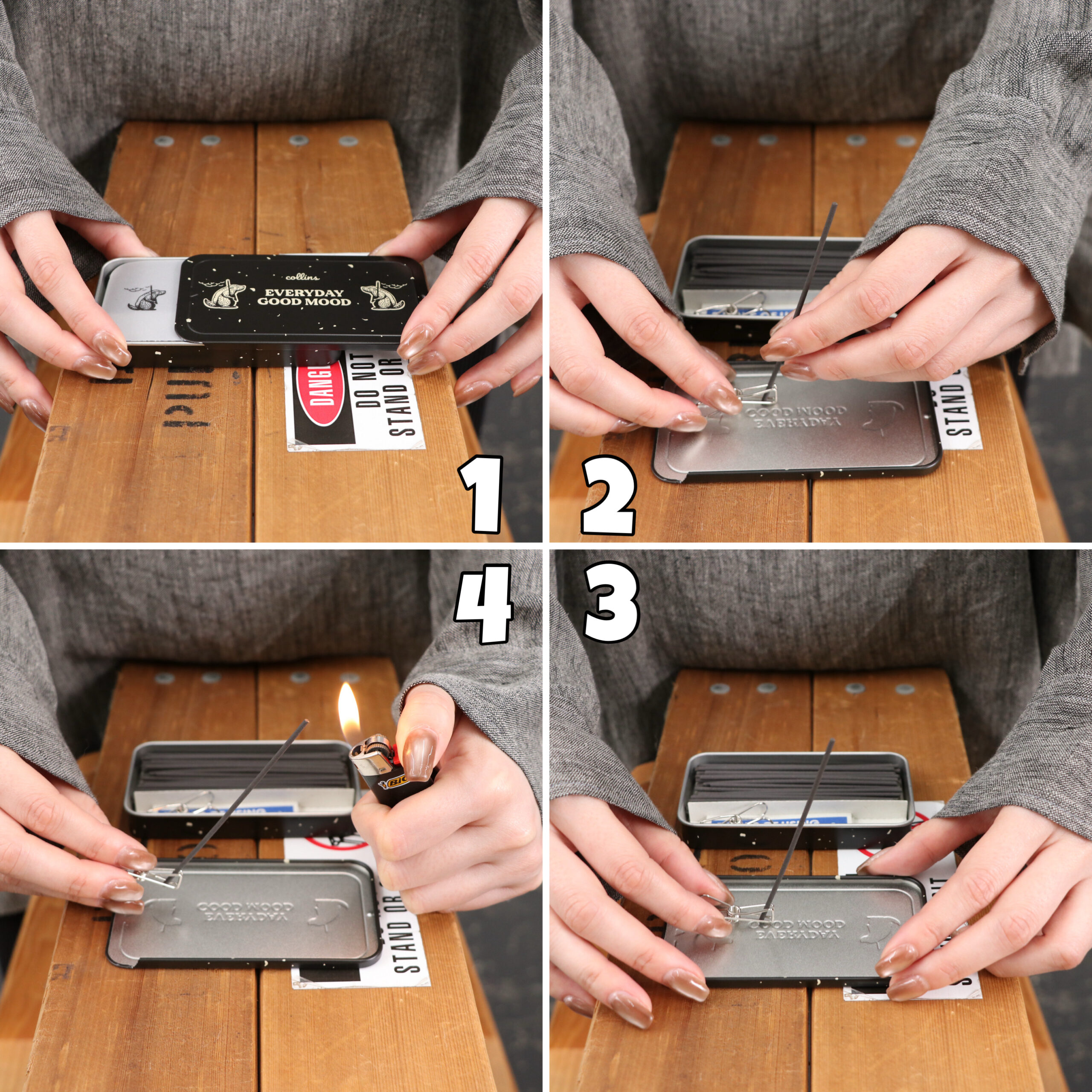 缶の蓋はスライドして取り外すことができて、裏返せばお香トレーに変身。