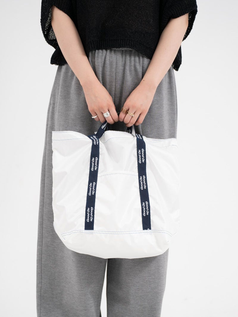 メインバッグとしてもサブバッグとしても活躍するGood Onのトートバッグ。 長さの違う2つの持ち手で持ち方を選べる2WAYタイプ。シンプルなデザインにテープロゴがアクセントになります。アウトドアシーンにもぴったりのバッグです。