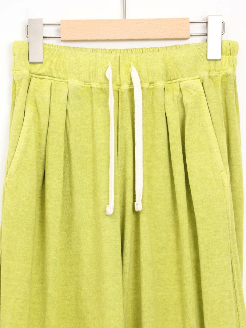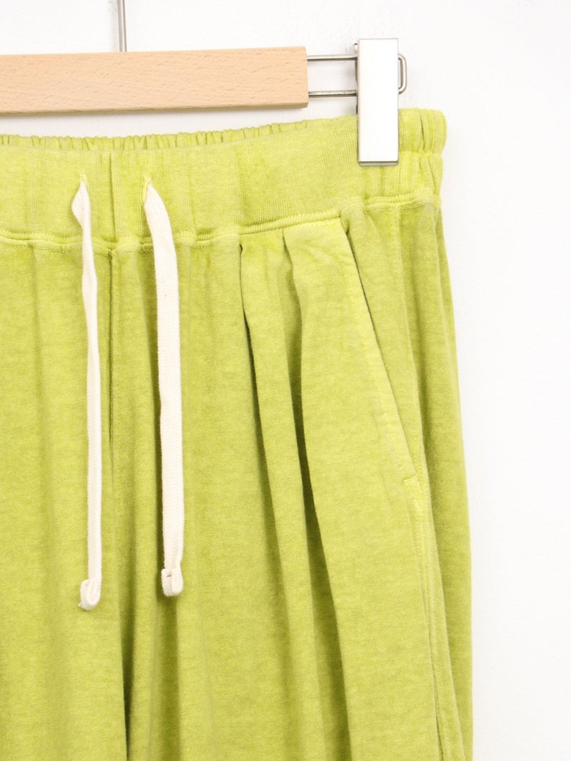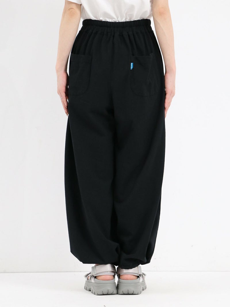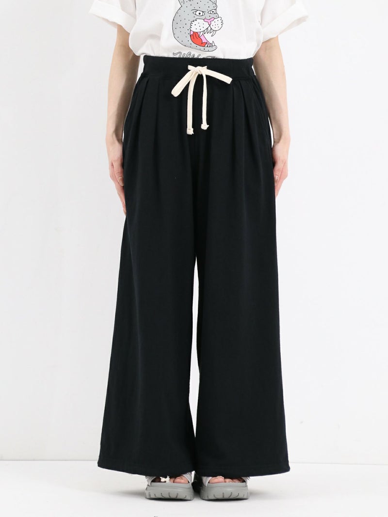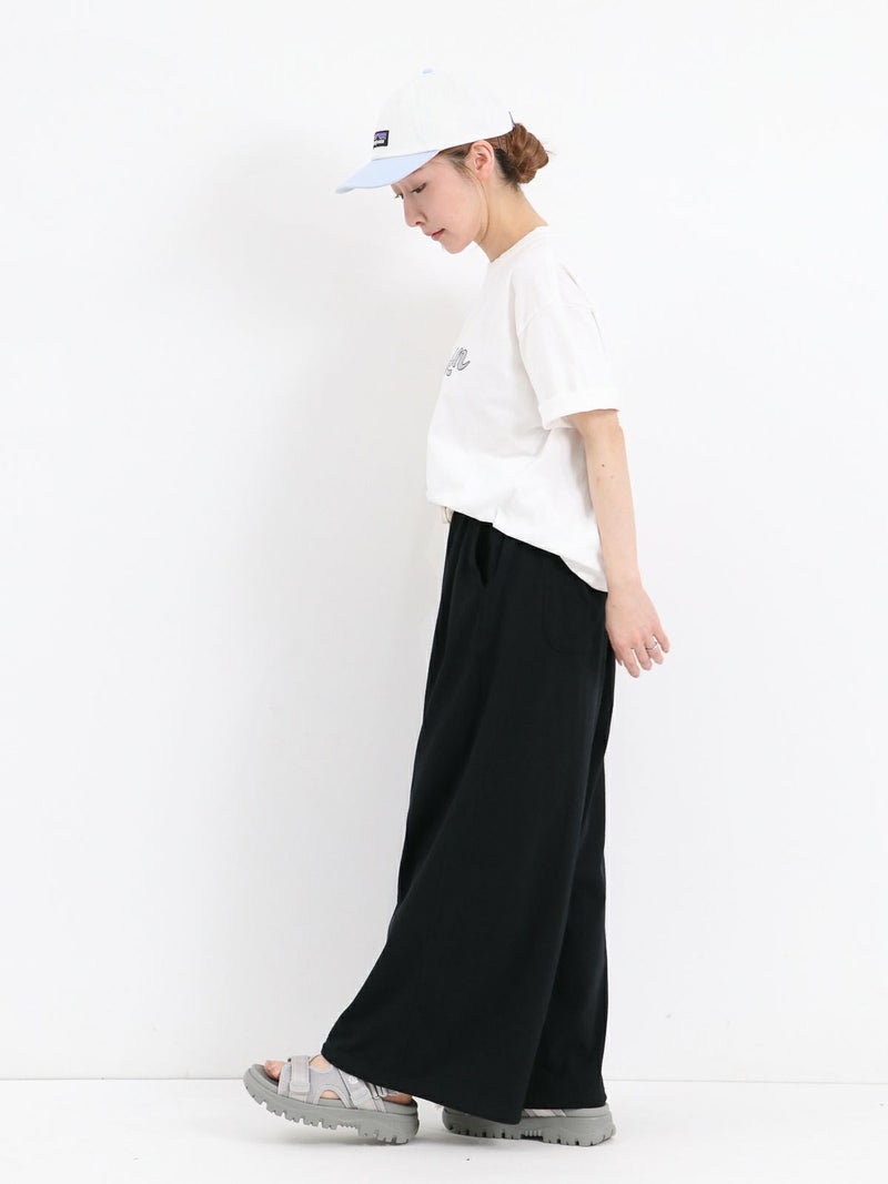 Tシャツ生地を使用したカジュアルなARABIAN WIDE PANTS。 コットン100% 5.5オンスジャージ生地の持つカジュアル感と柔らかな雰囲気、製品染め特有の風合い感を生かして、シンプルに仕上げたリラックスパンツです。裾のドローコードを絞らずにワイドパンツとして、裾を絞りエスニックパンツとして、合わせるトップスによってスタイルを使い分けることができる2way仕様となっています。アーバン、リゾート、デイリーなど様々なシーンで程良いアクティブさとリラックス感を演出してくれる一着です。