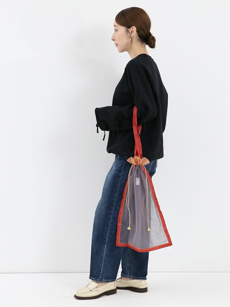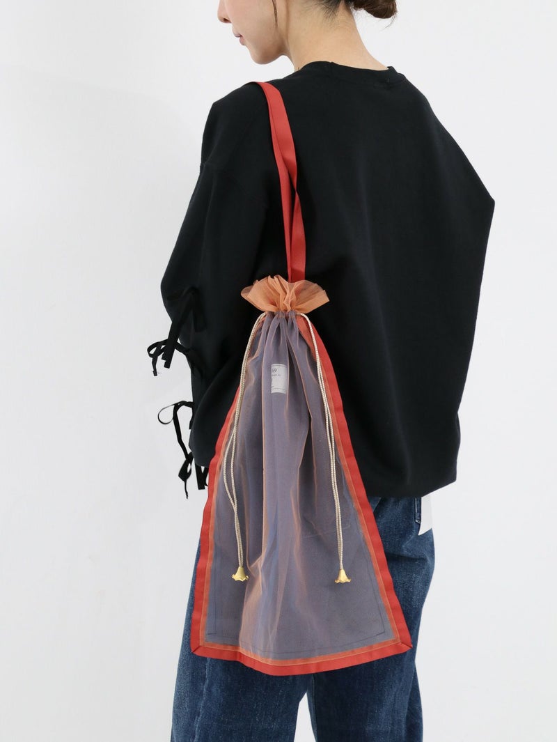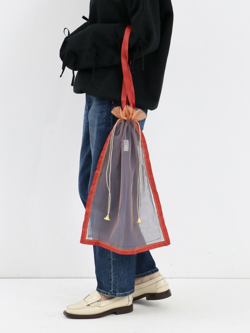インド製のシアーバッグ。 数枚のシアー素材を重ねることで生まれる、奥行きのある色合いが魅力。 軽やかな透け感と絶妙なカラーコンビネーションが、暗くなりがちな冬のコーディネートに華やかさをプラスしてくれます。