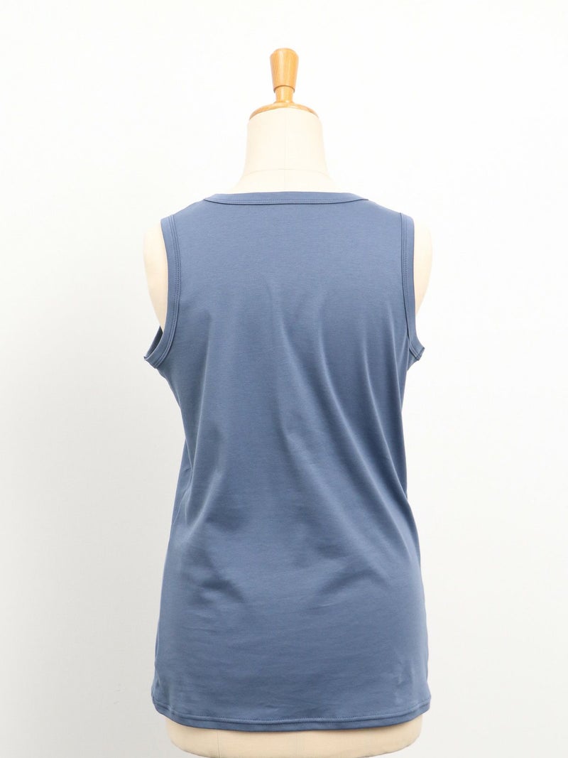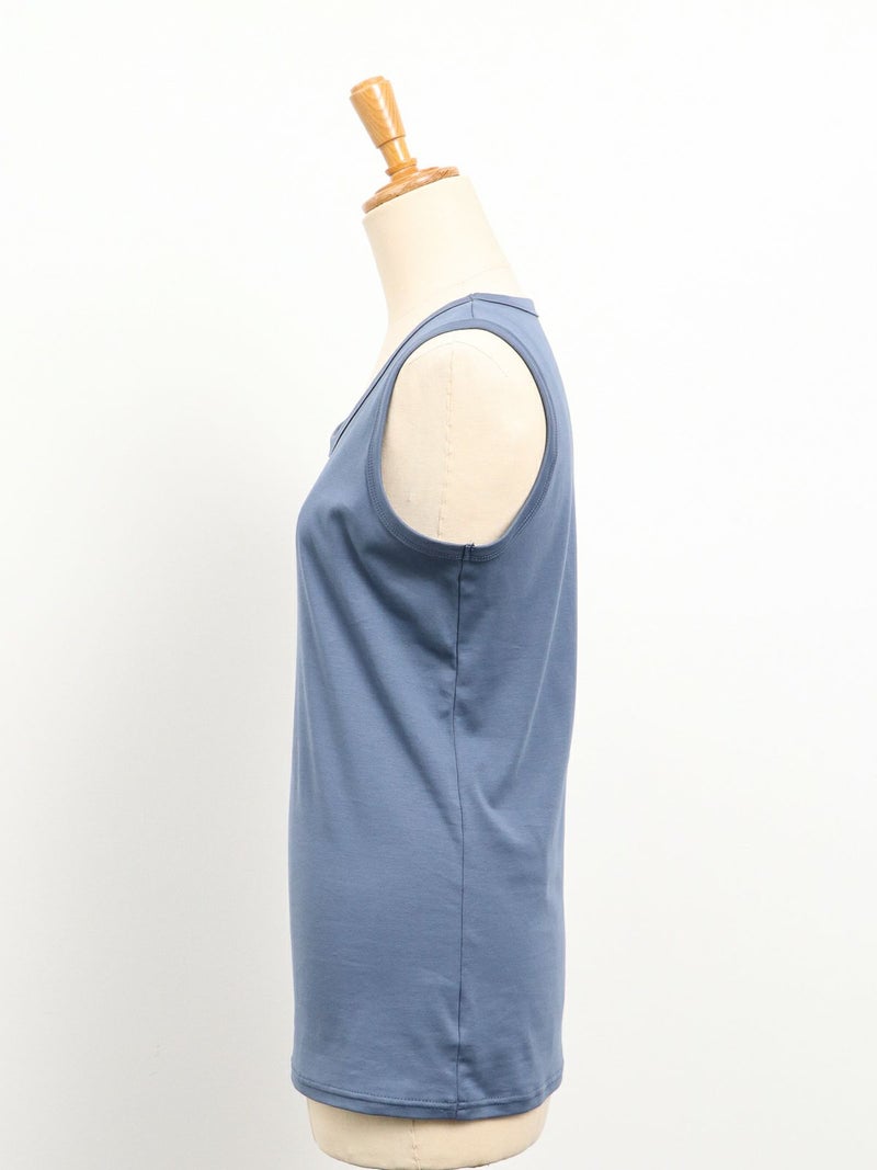 RONNIE SCOTT‘Sの定番タンクトップ。 従来の形から身幅を少しゆるくした形にアップデート。コットン100%のしなやかで優しい肌触りです。程よい開きのクルーネックで、首元の開いたトップスやシアー素材のインナーなどに幅広く活躍してくれます。