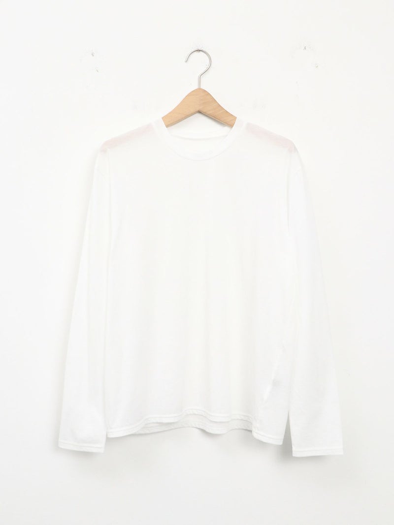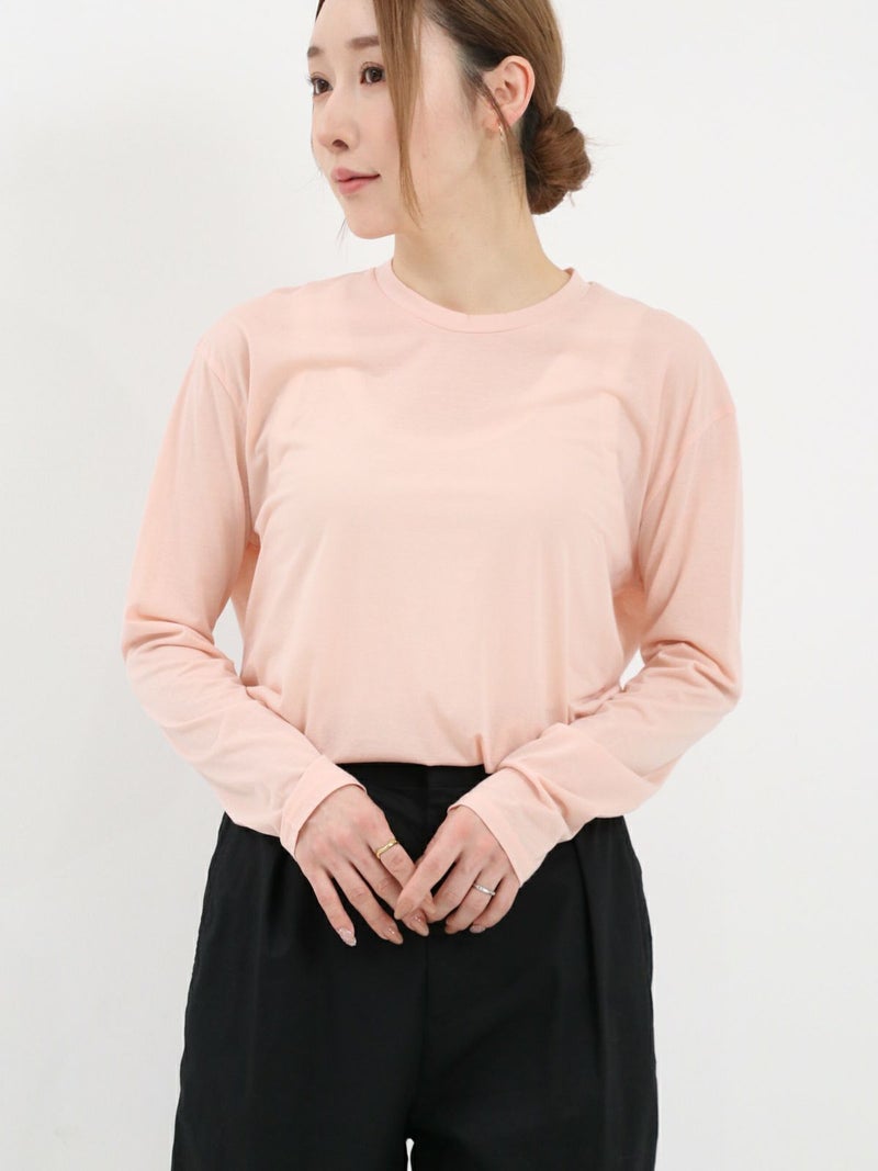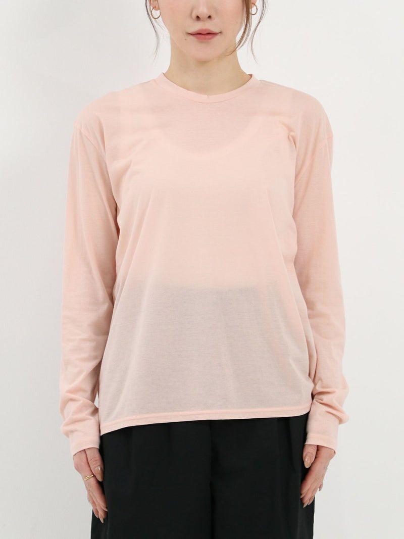 ロニースコッツオリジナルのシアーカットソー。 昨年好評だった形を元に首元がクルーネックになりました。程よい透け感があるので、ブラウスやニットの重ね着にも一枚着にも◎重宝する一枚です。