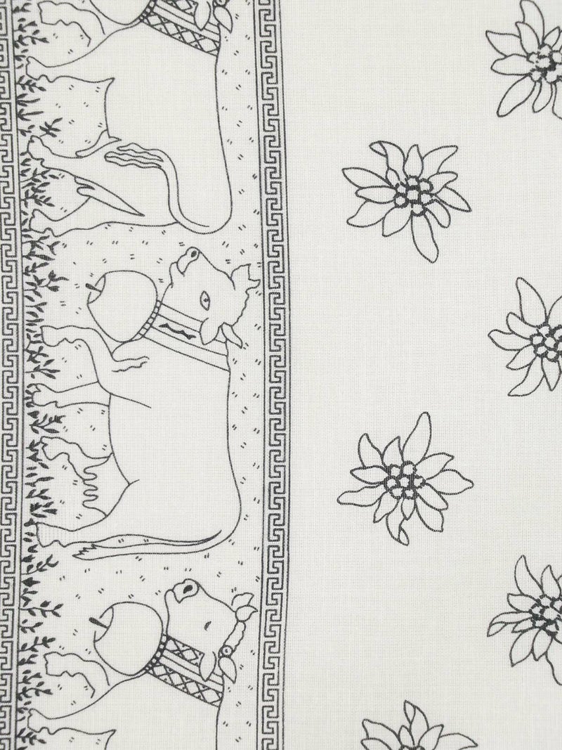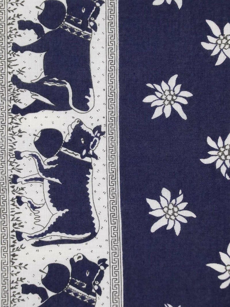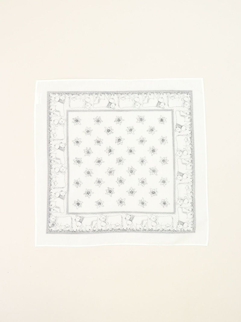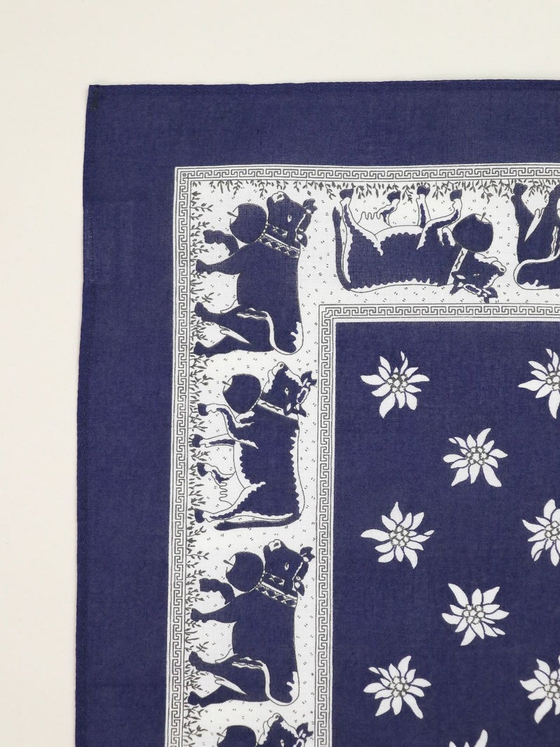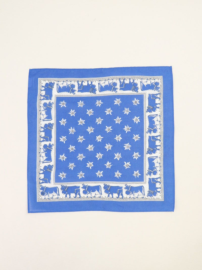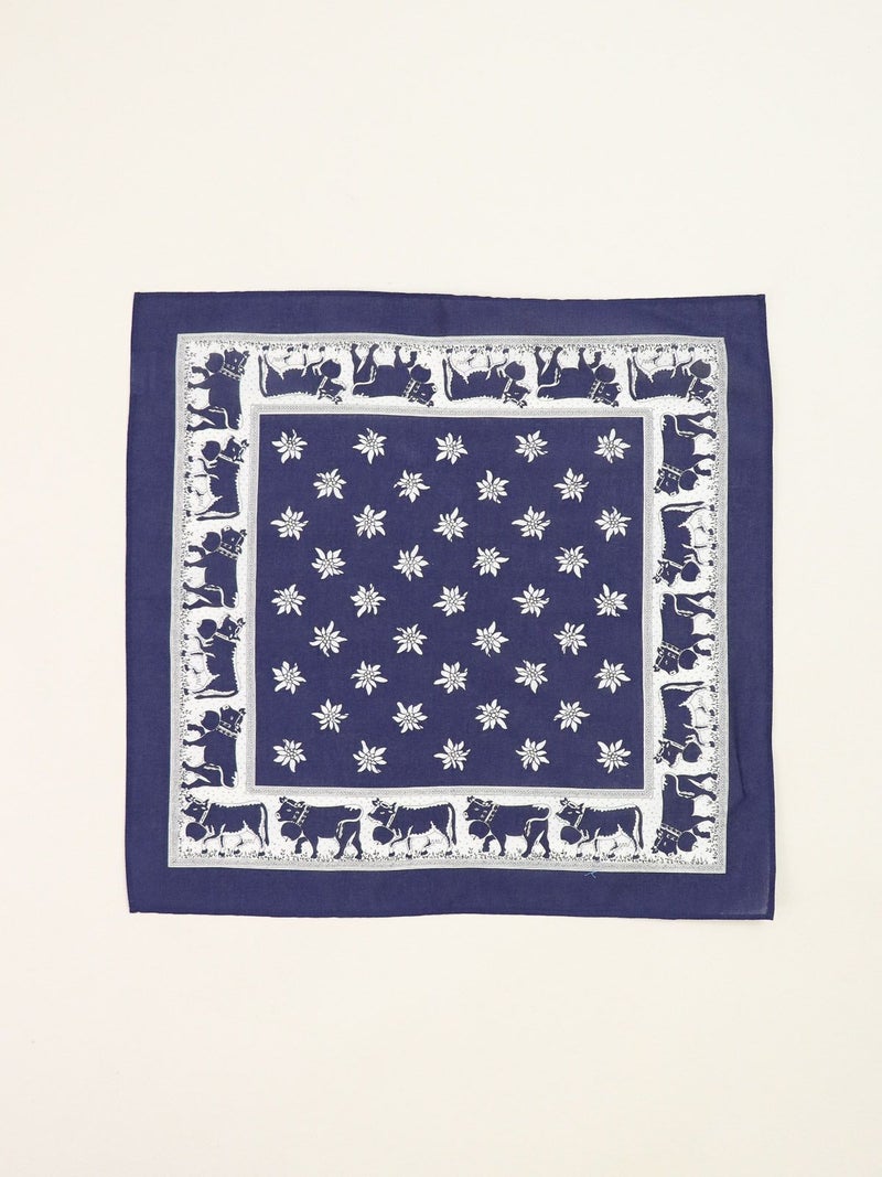 1828年創業のスイスの老舗ファクトリーブランドが手掛けるバンダナ。180年以上のあいだ独自の製法と品質を守り続け、スイス山岳地方の良質な水を活かした染色により他にはないカラーバリエーションと発色の良さを誇ります。地元の伝統的なパターンであるペイズリーの他、スイスらしいしエーデルワイス、カウベルなど…自社デザインのプリント柄も持ち繊細なパターンも魅力の1つです。