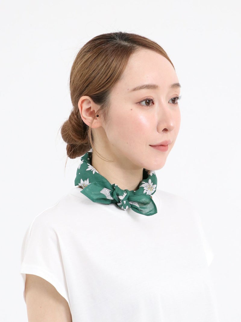 ハンカチとしての使用はもちろん、首や頭に巻いたいり、バックのハンドルにつけたりと、スタイリングのワンポイント使いとしてもおすすめです。ギフトとしても最適です。