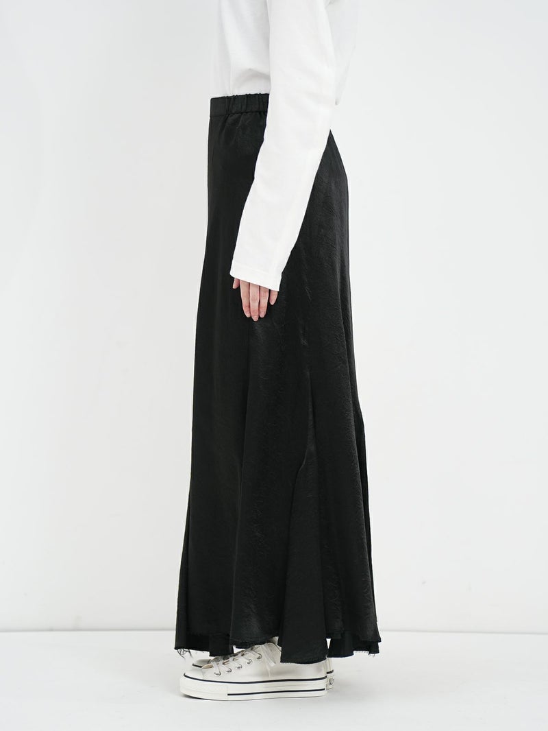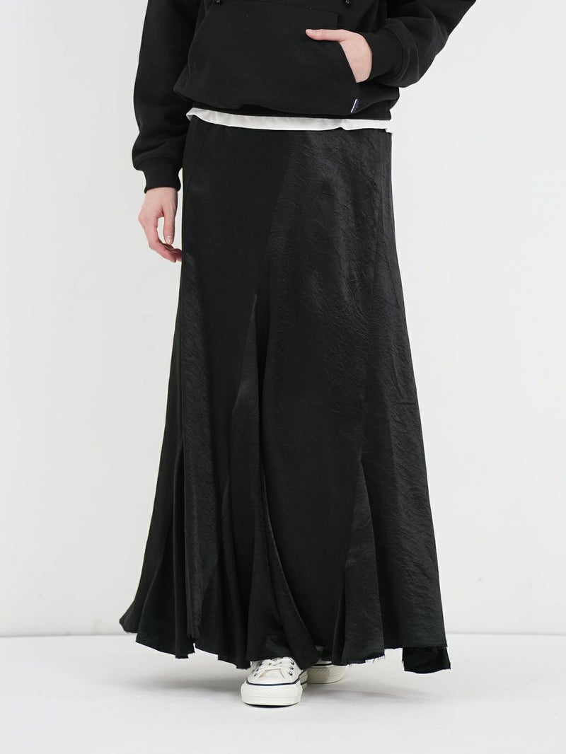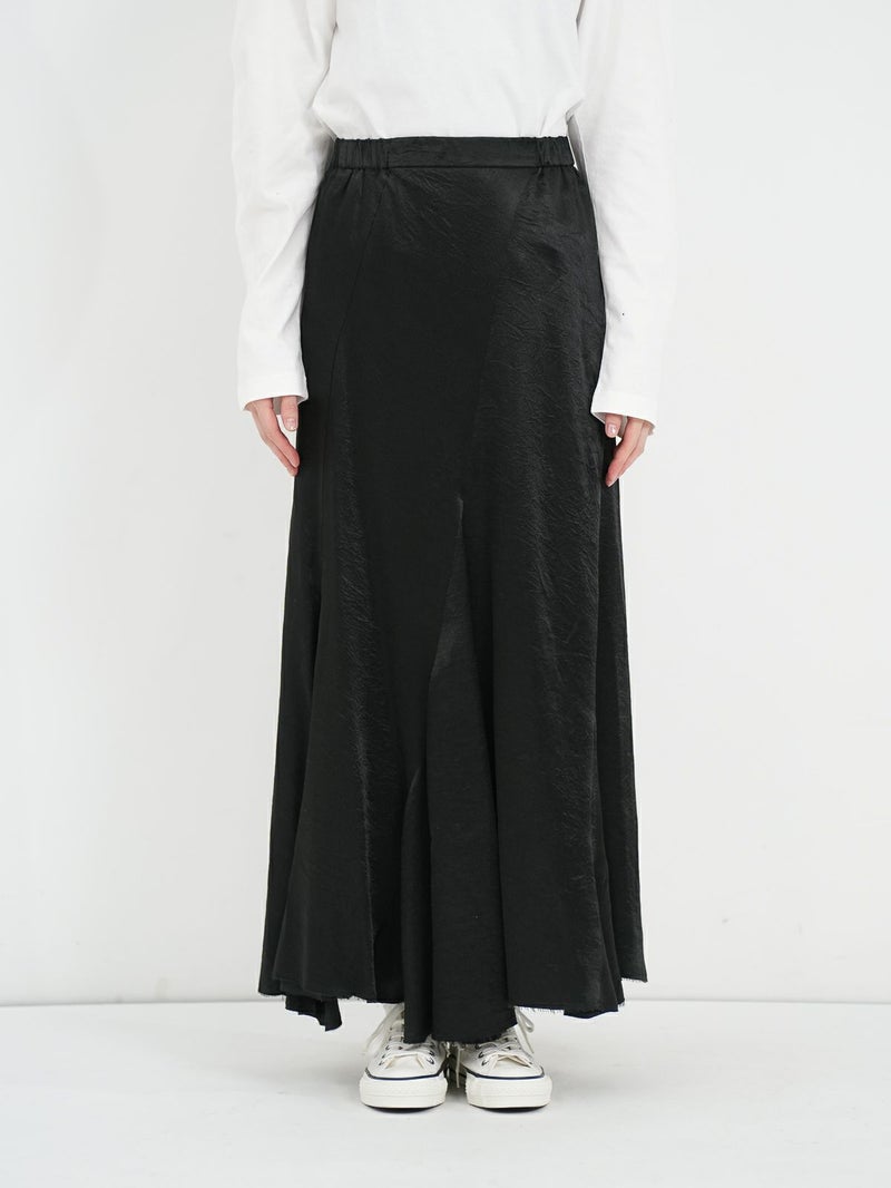 斜めに切り返したエスカルゴデザインが特徴のロングスカート。