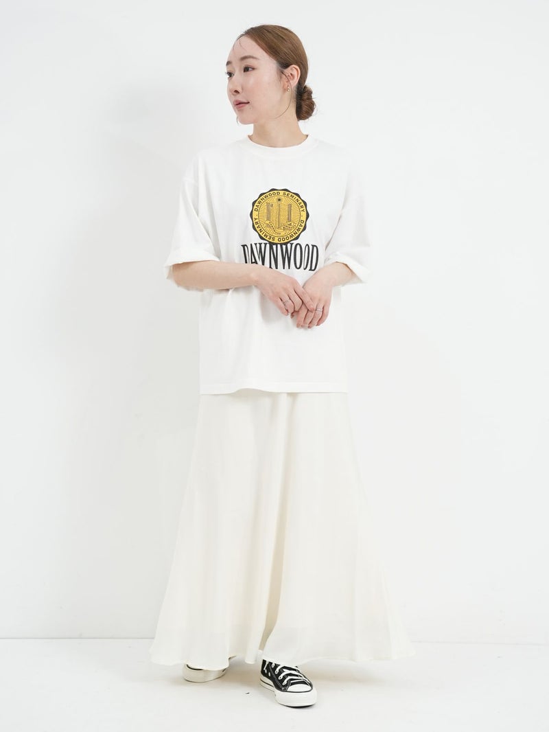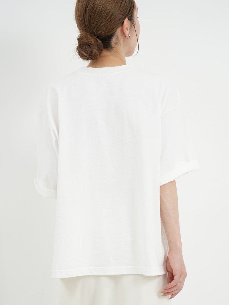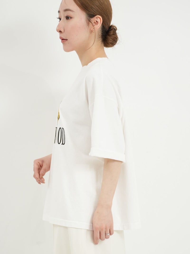 ダメージ感のあるプリントがこなれ感のでるTシャツ。 柔らかいコットン生地で着心地の良い一枚。カジュアルな雰囲気にはもちろん、スカートなどと合わせてキレイめな雰囲気にも◎
