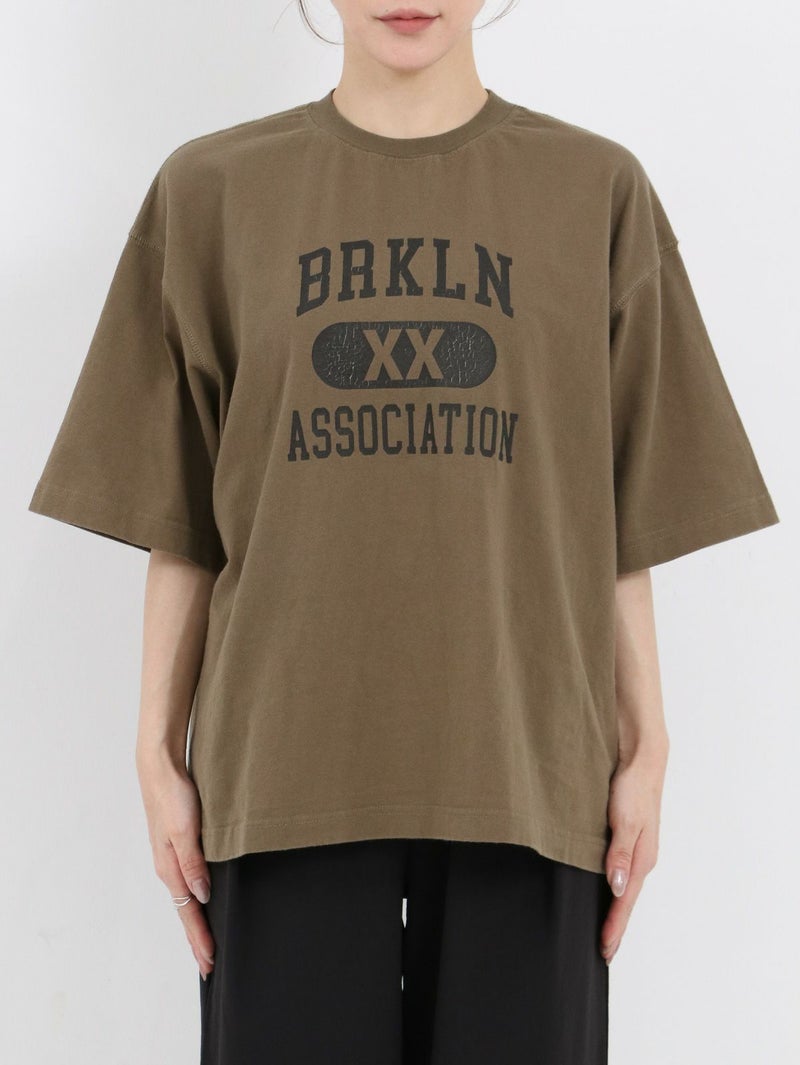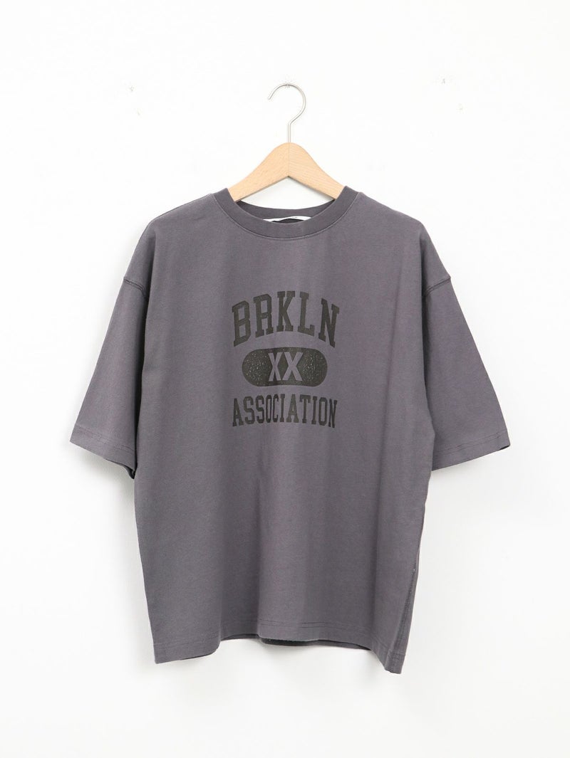 BRKLNのロゴがポイントのラフに着れるTシャツ。 綿100%で、ご自宅でのお洗濯も可能。袖の切り替え部分にステッチが施されており、ゆったりしたシルエットで着ていただけます。着丈が長すぎないので、ワイドパンツやスカートとの合わせもおすすめです。