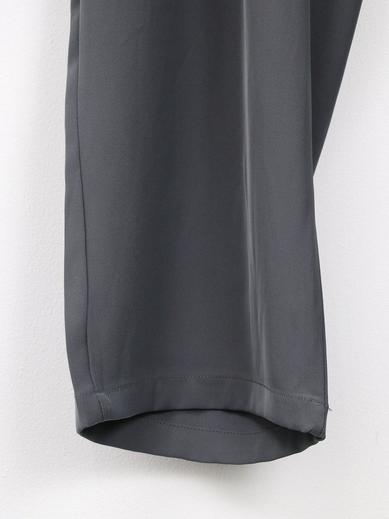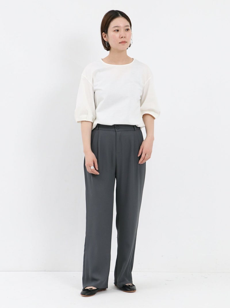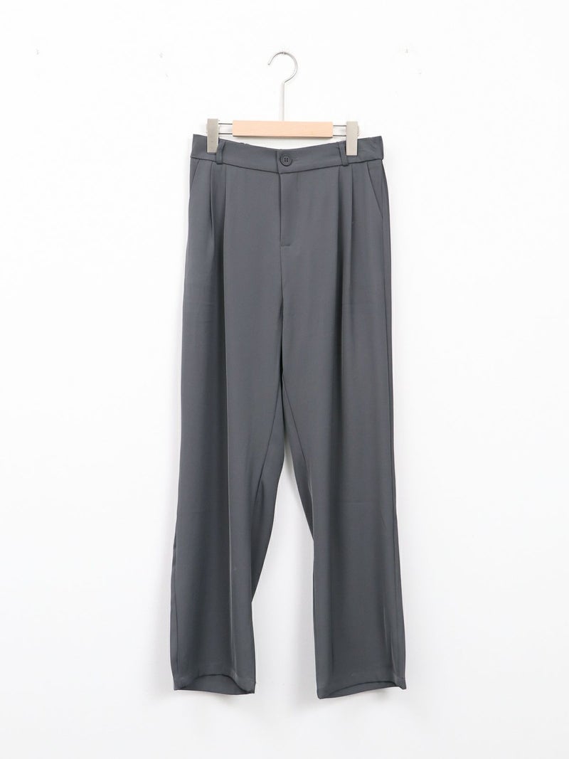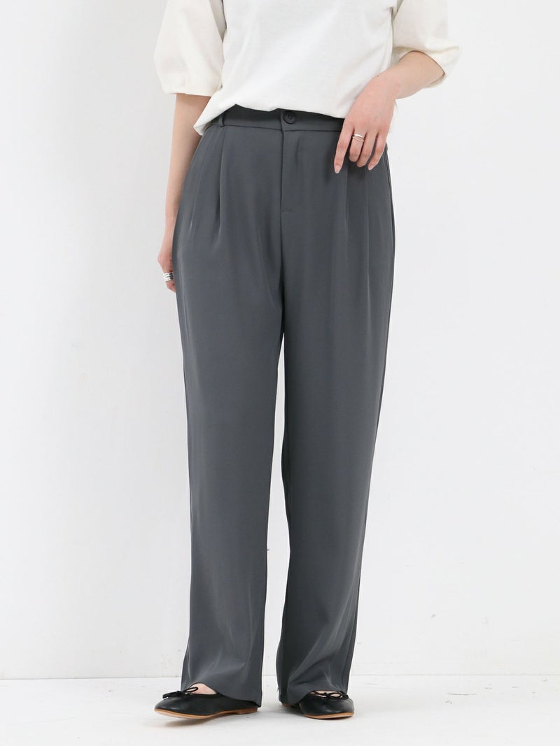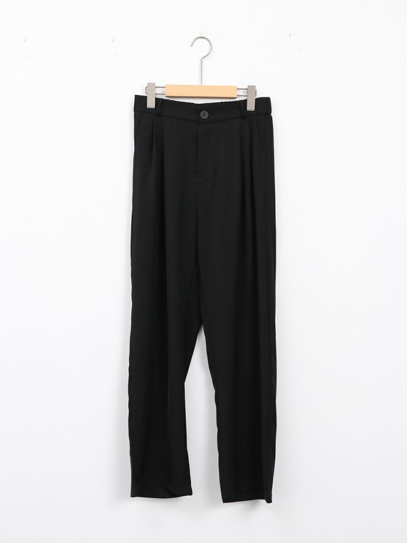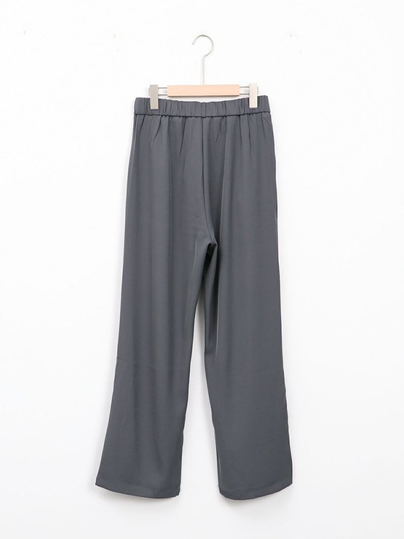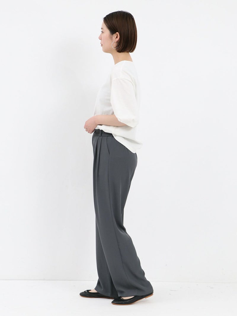 とろんとした素材が魅力のタックパンツ。 ウエストは後ろゴム仕様で履き心地も抜群。お仕事から普段着まで幅広く使える一枚です。
