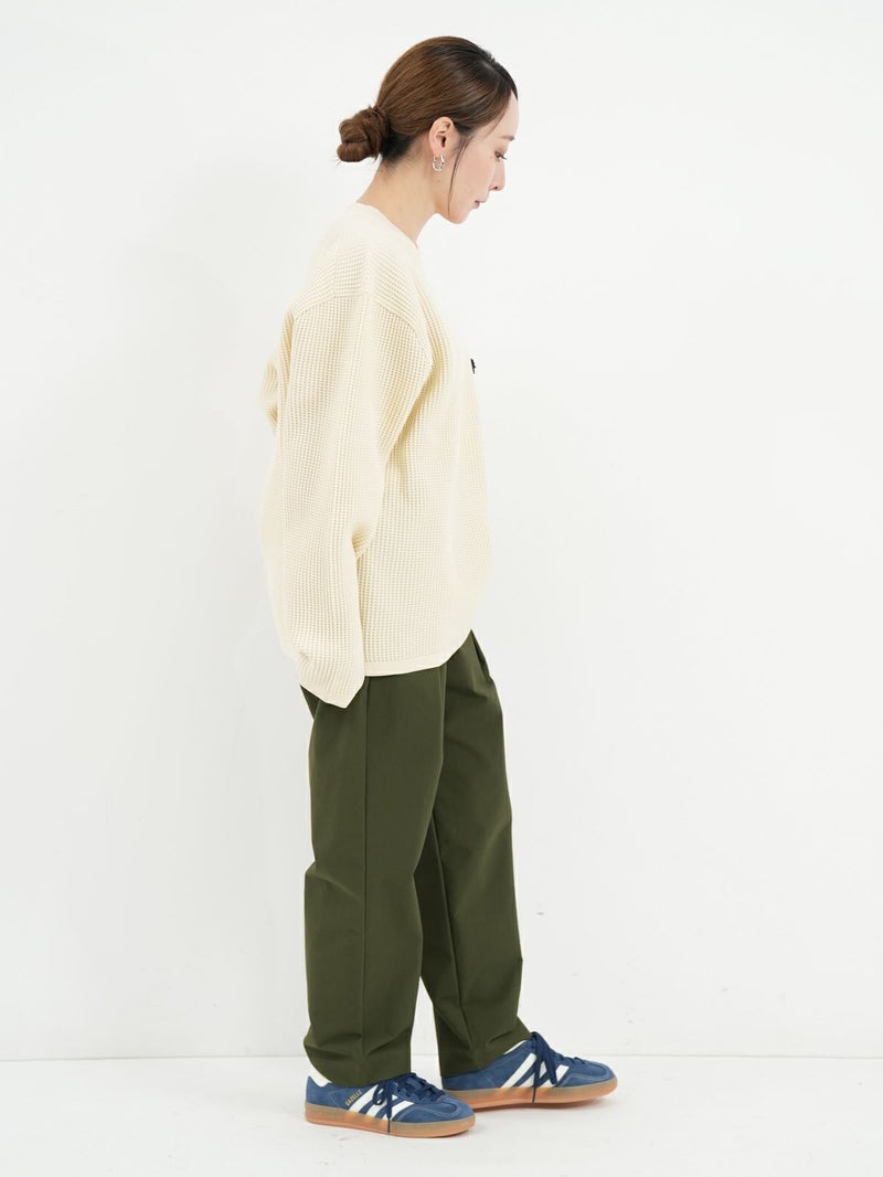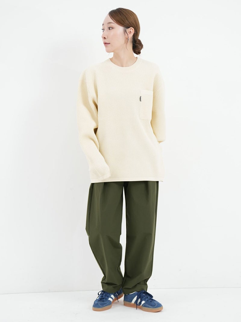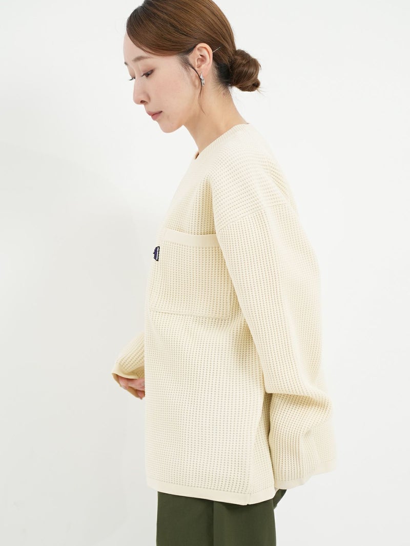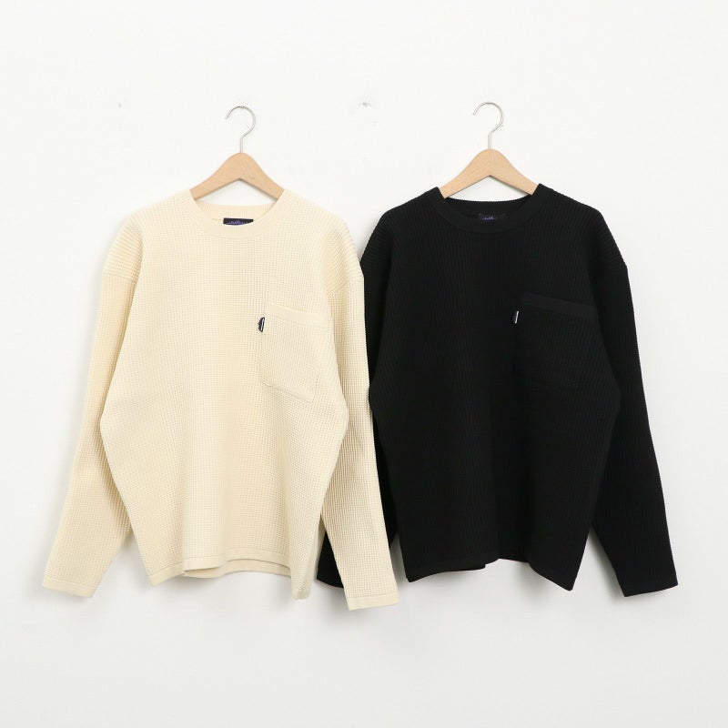 THOUSAND MILEのロングスリーブポケットTシャツ。 立体感のあるワッフル仕様のシンプルなロングスリーブトップスでさらりとした着心地が気温差のあるデイリーシーンにもフィット。シンプルなボトムスはもちろん、柄ものともコーディネートのバランスが取りやすいアイテムです◎