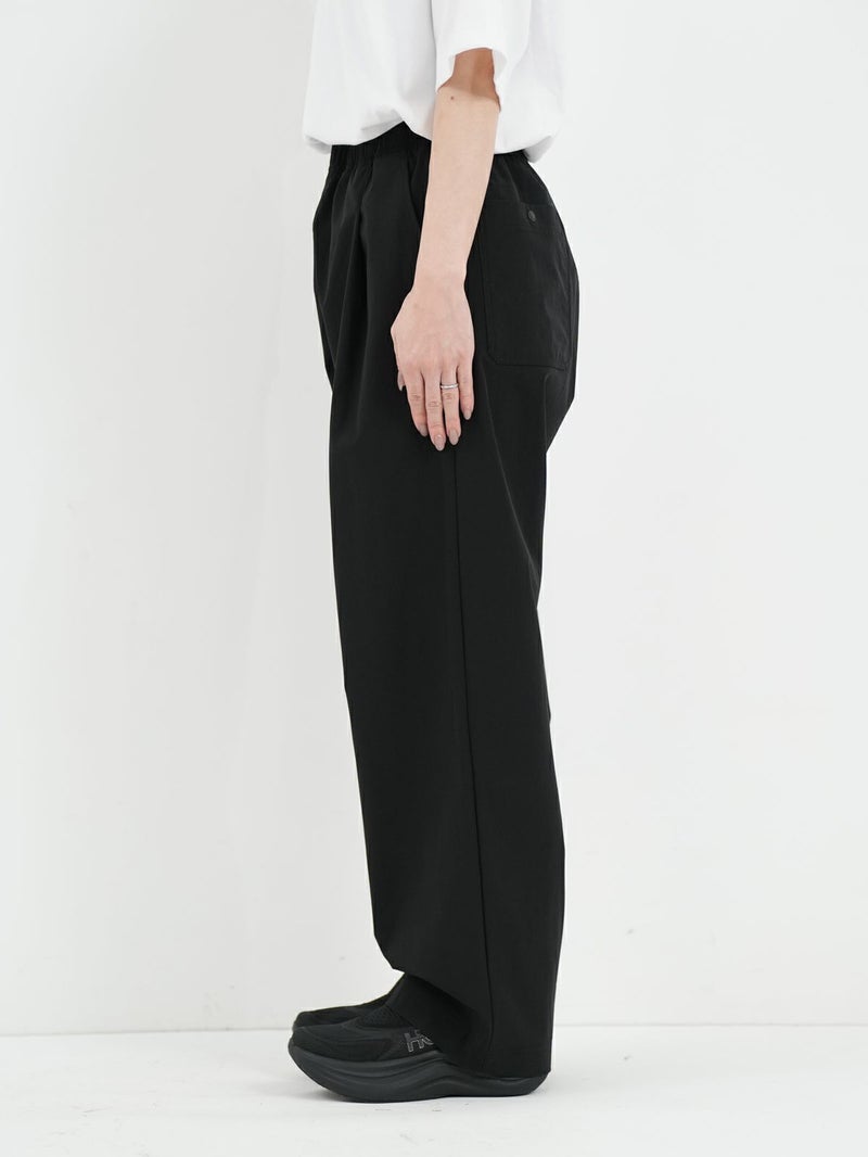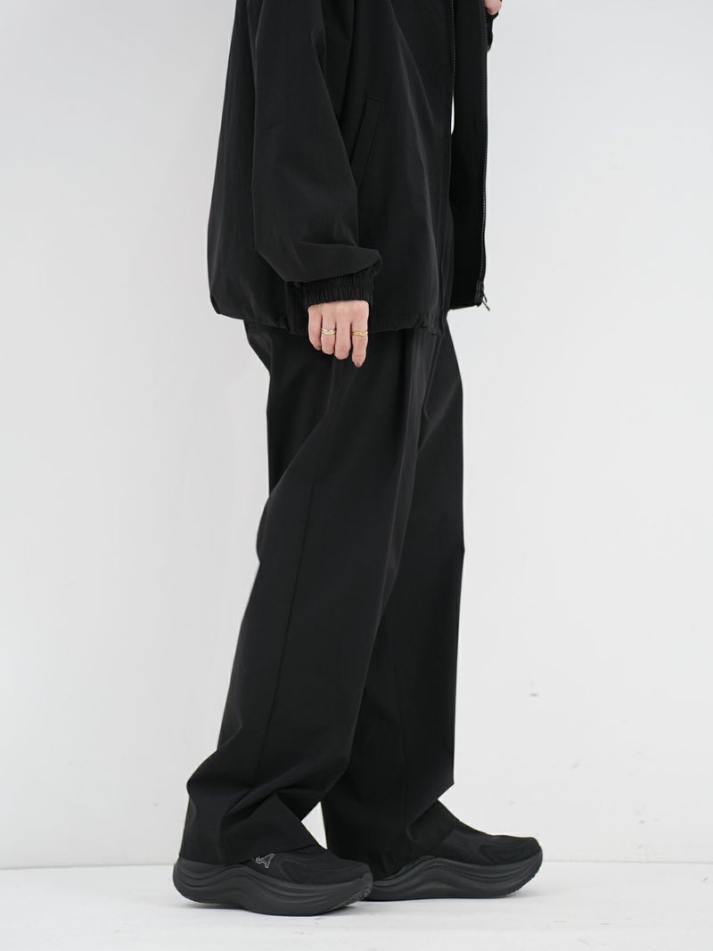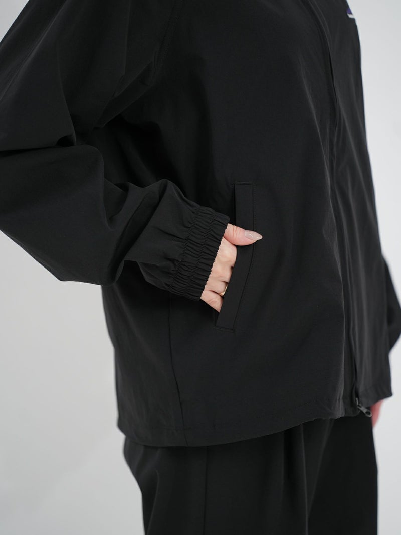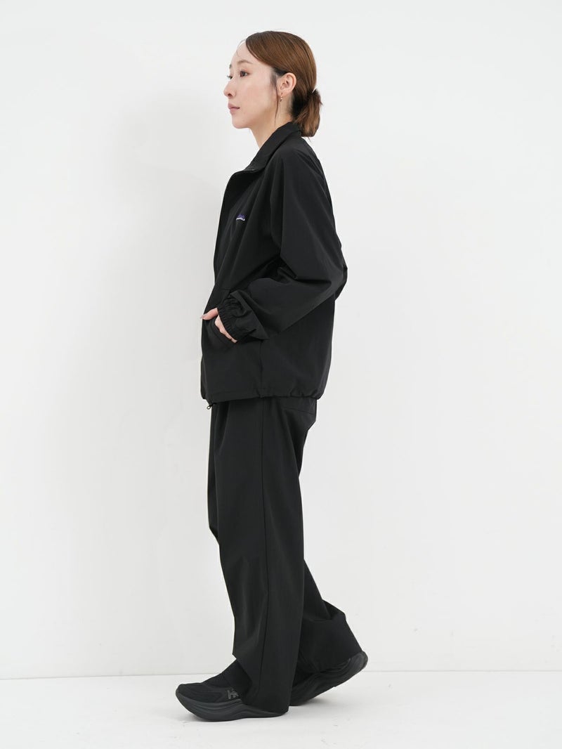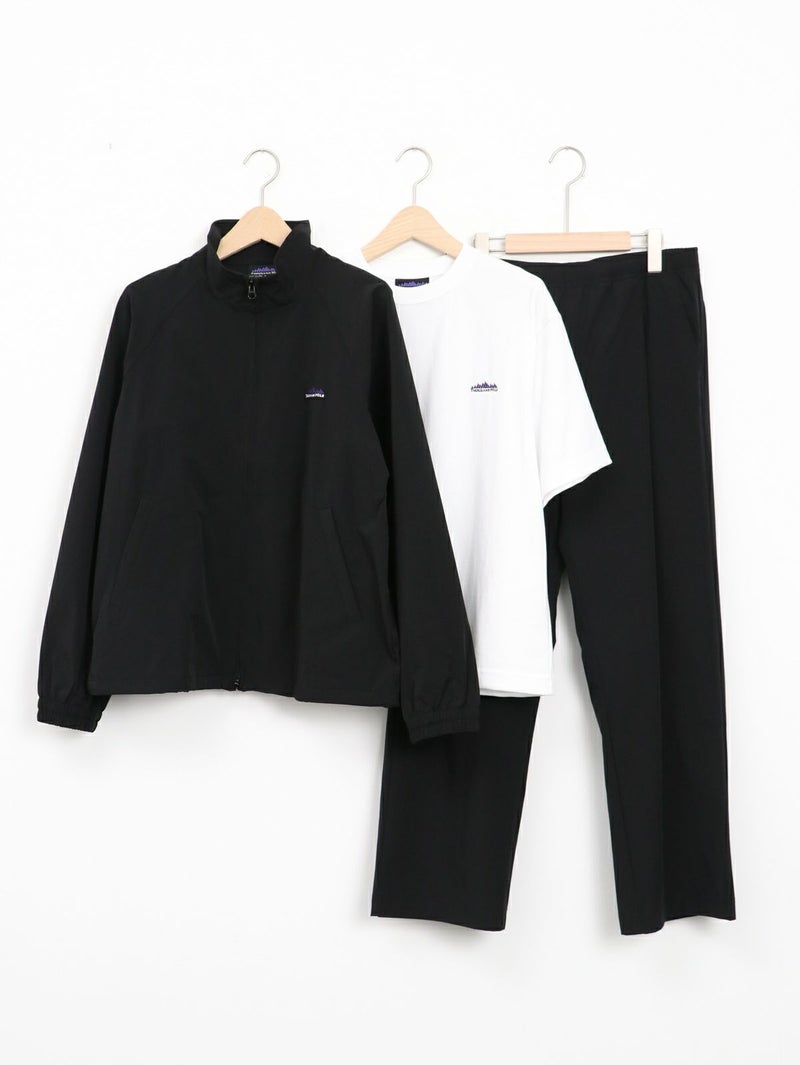 ストレッチが効いていて着心地も抜群なTシャツ付きセットアップ。 旅先やちょっと出かけるのに便利で、トップスだけでも、パンツだけでも別々にお使いいただけるセットアップです。ご自宅での洗濯も可能なところもポイントです。 【Tシャツ】 Tシャツはポケット無しの半袖Tシャツです。胸元にブランドロゴ入りです。 【ブルゾン】 ブルゾンはダブルジッパー仕様になっており両サイドにポケットが配されております。ブルゾンの裾にはスピンドルが施されシルエットをアレンジすることができます。胸元にブランドロゴ入りです。 【パンツ】 パンツは、フロント部分にタックが入っており、ややゆとりのあるシルエットで緩やかにテーパードがかかっております。ウエストはゴムと紐でサイズ調節が可能なイージーパンツ仕様です。後ろポケット付近にブランドロゴ入りです。