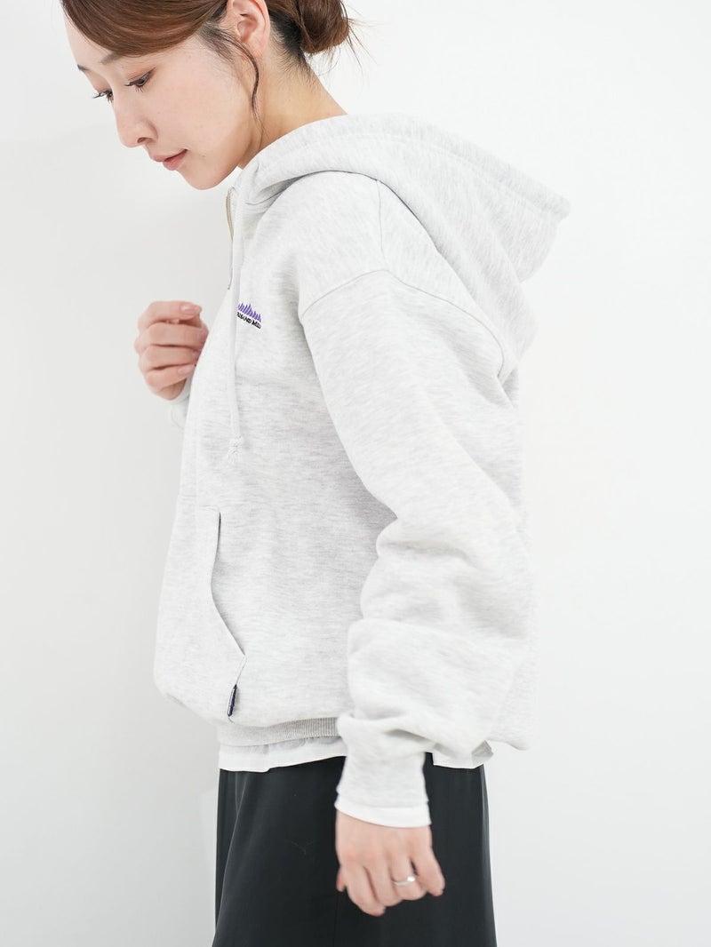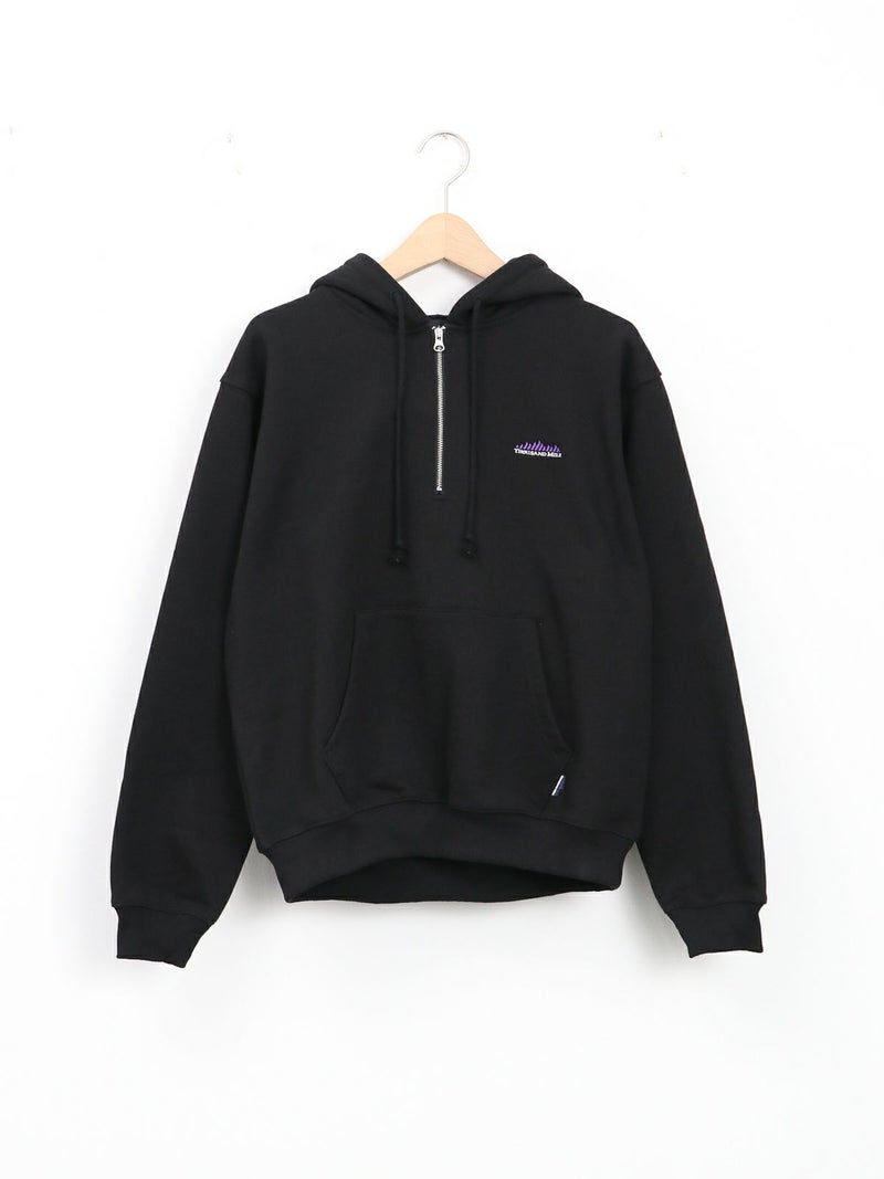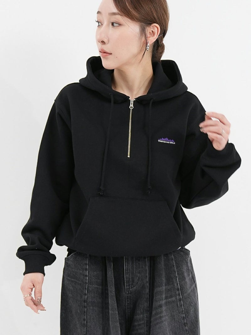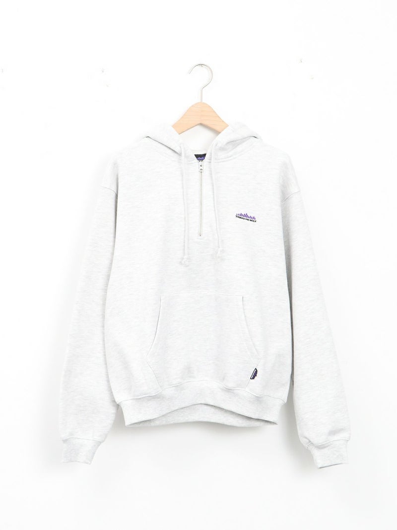 裏起毛素材のハーフジップパーカー。 重ね着しやすいゆったりとしたシルエット。ジップを開けて、シャツやカットソーとの抜け感のあるレイヤードスタイルもおすすめ。裏起毛のため保温性も高く、暖かく着ていただけます。