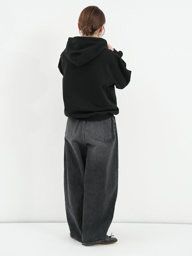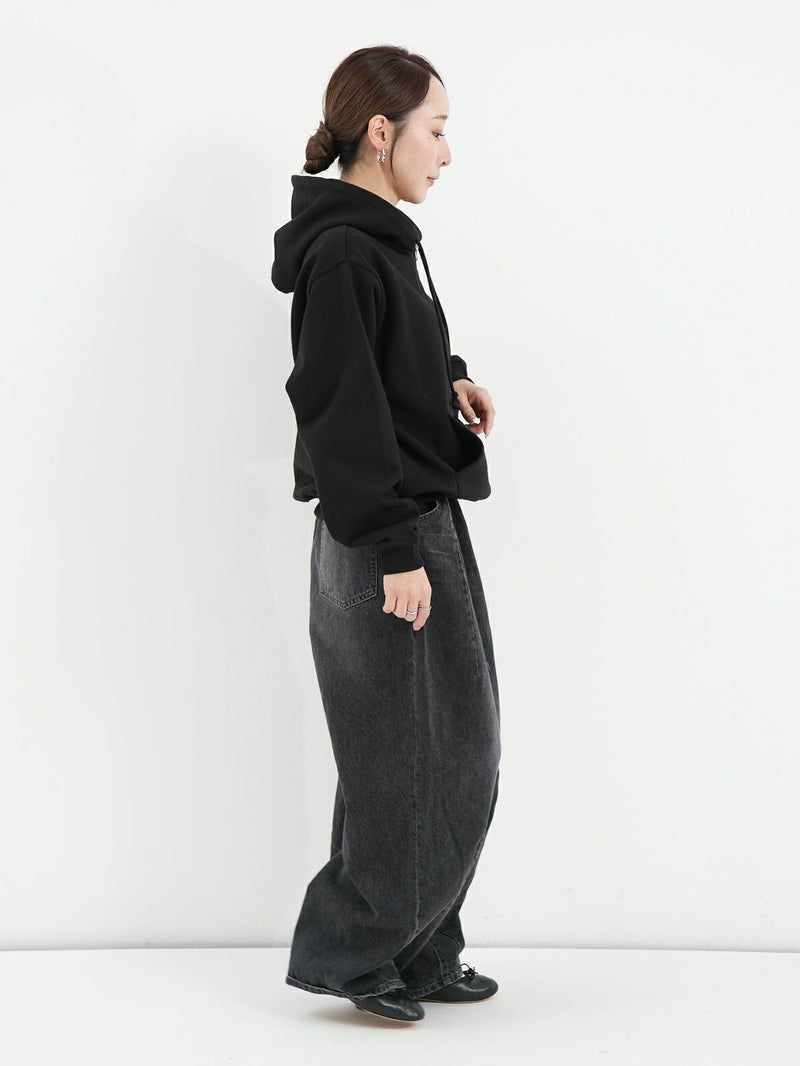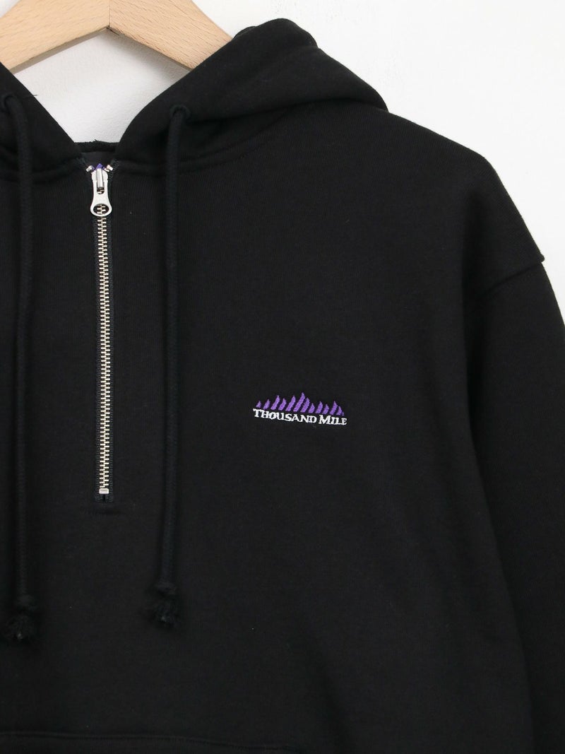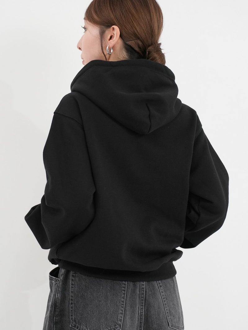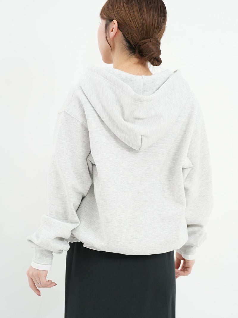 裏起毛素材のハーフジップパーカー。 重ね着しやすいゆったりとしたシルエット。ジップを開けて、シャツやカットソーとの抜け感のあるレイヤードスタイルもおすすめ。裏起毛のため保温性も高く、暖かく着ていただけます。