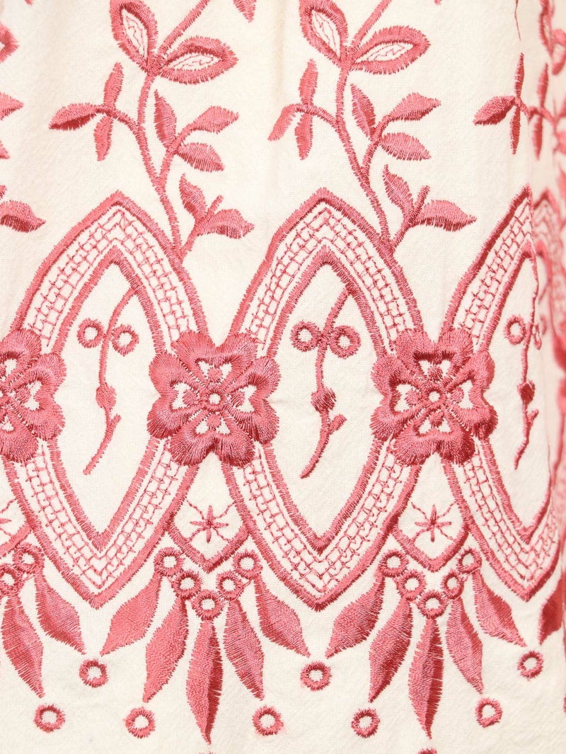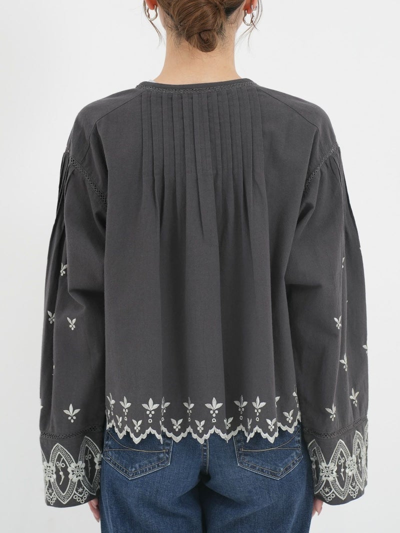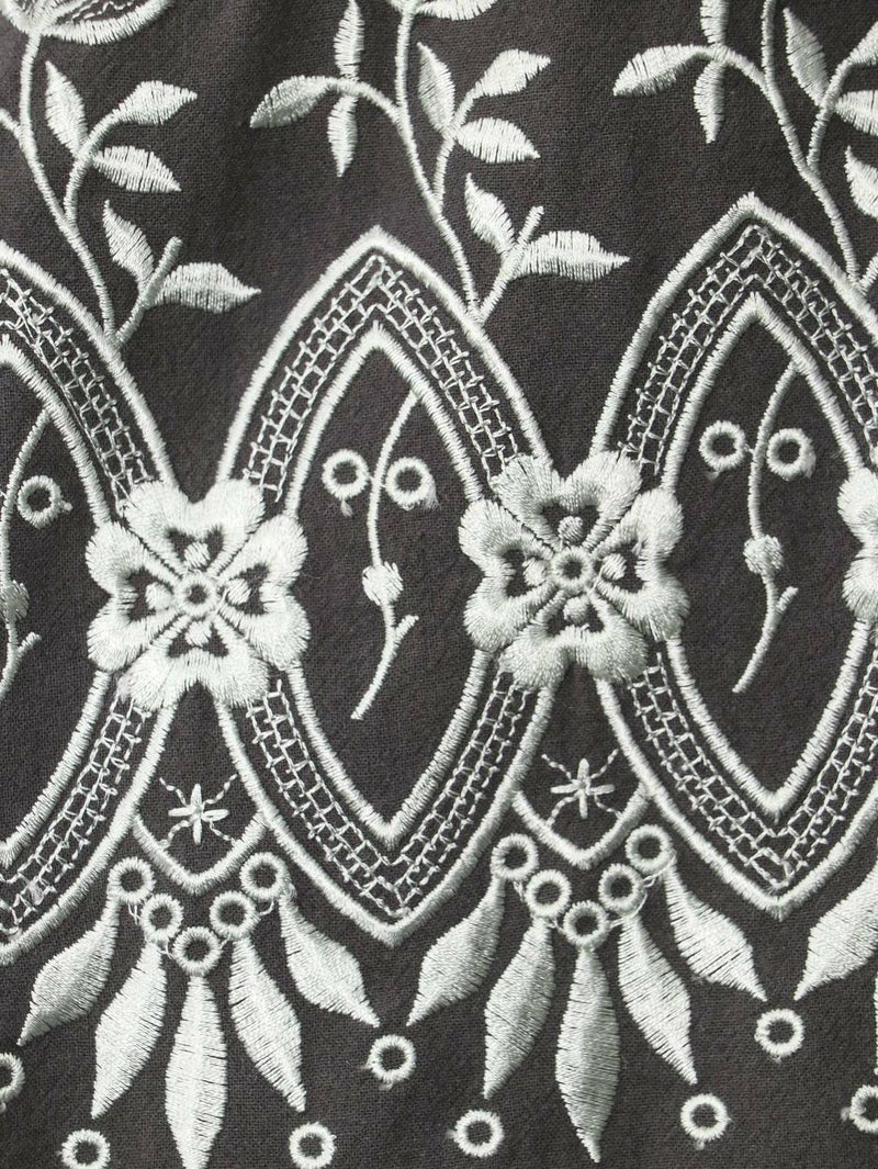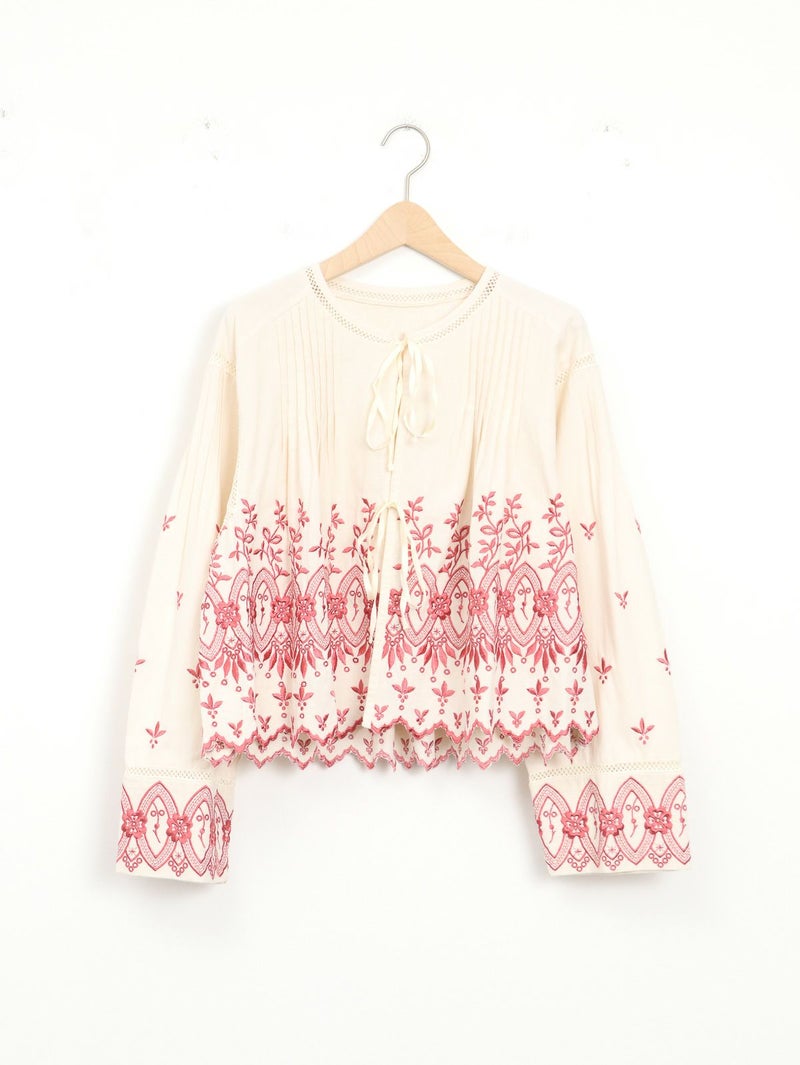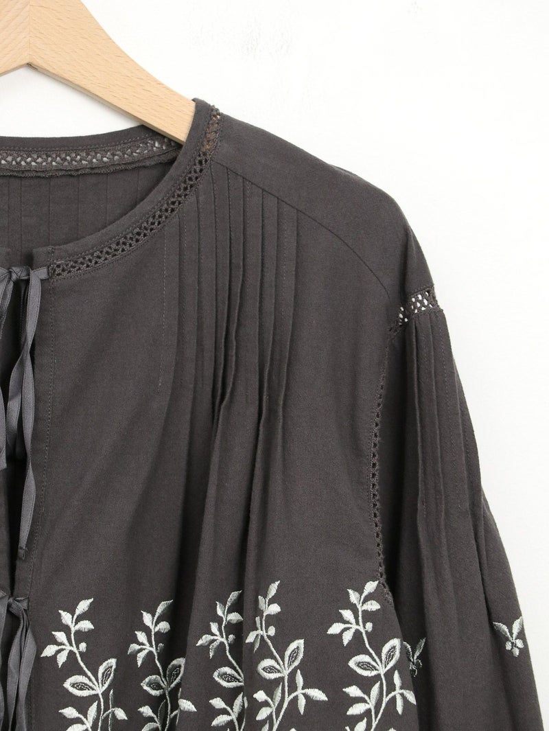 繊細で美しいエンブロイダリーがフェミニンで華やかな印象を与えてくれるトップ。 きゅっと結んだかわいいリボン、細やかなピンタック、ボリューム袖が女性らしさを引き立てます。爽やかでクリーンなコットン素材を用いて、快適な着心地をキープ。絶妙な着丈バランスで、ワンピースからパンツルックまで着まわしが効きます。