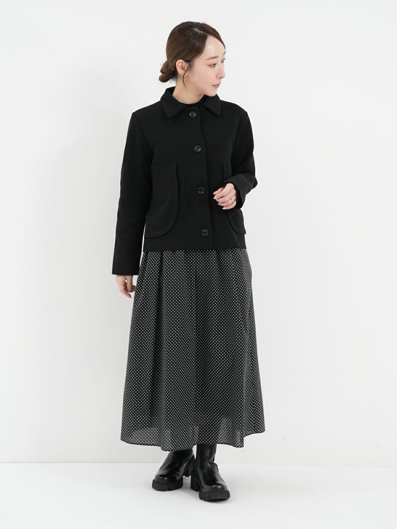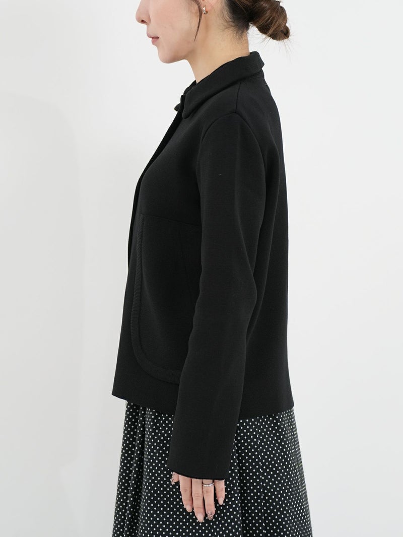 Manna定番、ミラノリブジャケット。 コットンとポリエステルの混合素材でどんなボトムともバランスの取りやすい絶妙なショート丈。カジュアルからキレイめまで幅広いコーディネートで活躍します。