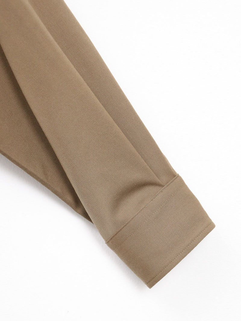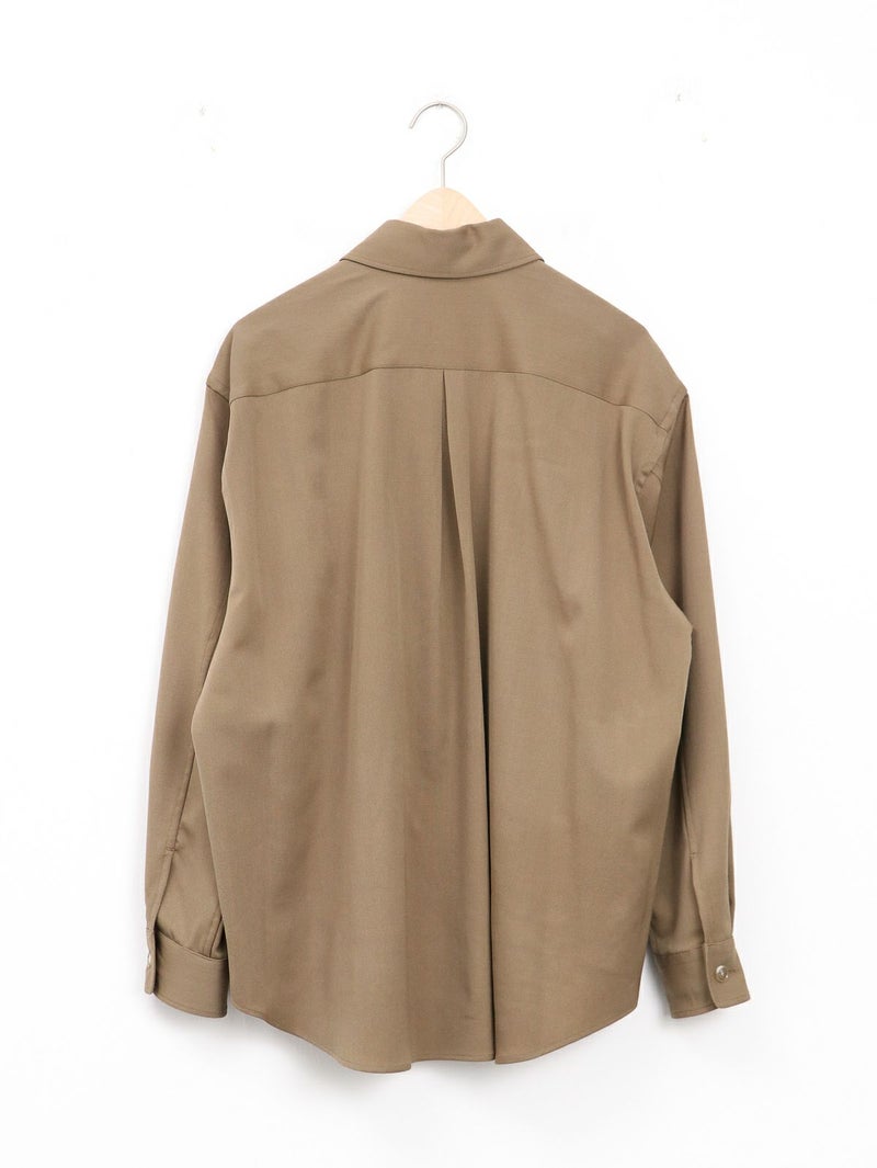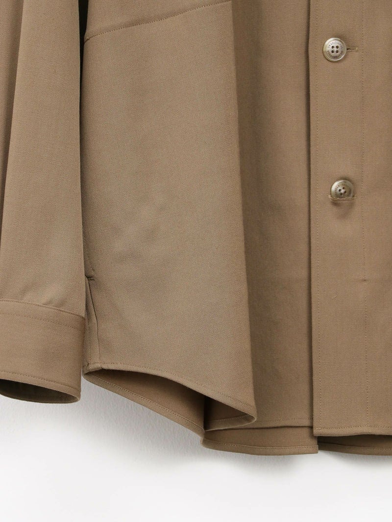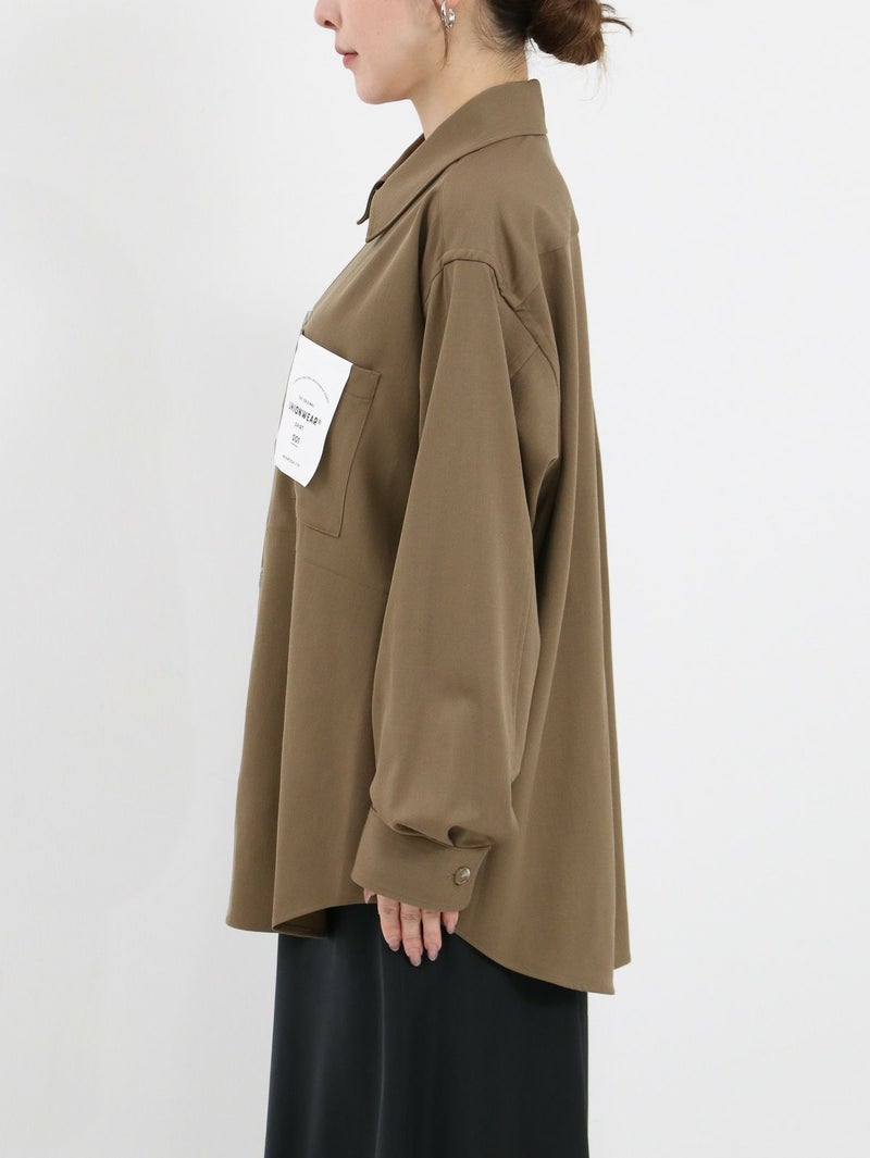 大人気のクリーンなワークウェアシリーズUNIONWEAR(ユニオンウェア)のオーバーサイズのワークシャツ、SHIRT 001(シャツ 001)。 こちらのシャツ 001は、程よくドロップしたショルダーラインとボクシーなシルエットが魅力で、羽織りとしてもアウターのインナーとしても活躍する万能アイテムです。素材には、程よいハリとクリアな表情が特長のウールストレッチのギャバジンを使用。そのハリのある生地から美しいシルエットが生まれます。
