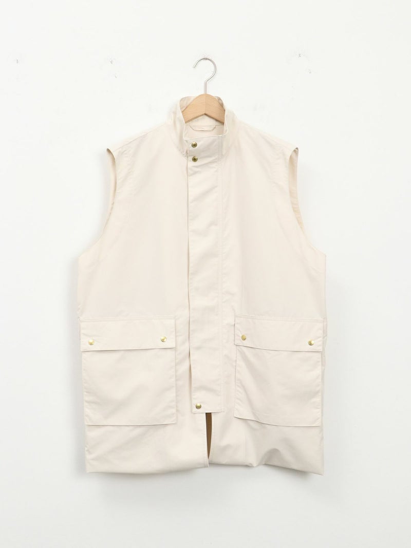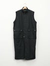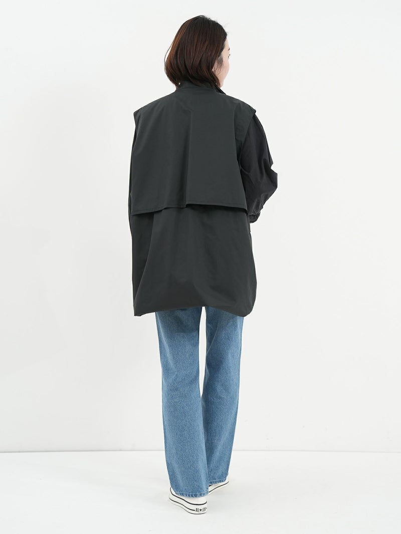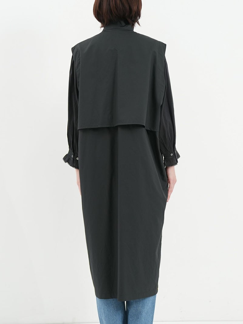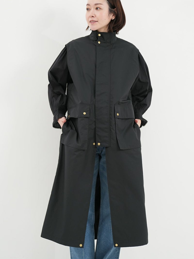 Traditional Weatherwearのスタンドカラーコート、ELGIN LONG(エルガン ロング)にスリーブレスモデルが新登場。 英国伝統のフィールドコートをベースにした、スタンドカラーで背中の大きなアンブレラヨークが特長のアウターウェアです。 内側に折り返してスナップボタンを留めると、着丈が約40cm短くなりショート丈のベストに早変わり。折り返して短くなった裾の部分がふんわりして柔らかな印象になり、横からのAラインが際立ちます。
