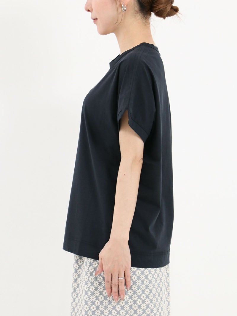 毎年人気の定番ドルマンTシャツ。 シンプルながらも肩から袖の控えめなデザインがポイントです。高品質な超長綿の毛羽を極限まで削ぎ落としたクリアな表面感が特徴。サラッと涼しく着ることができ、これからの季節に重宝するアイテムです。