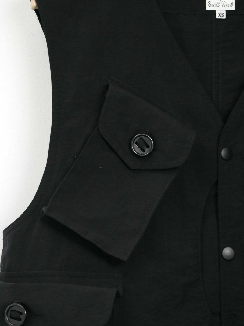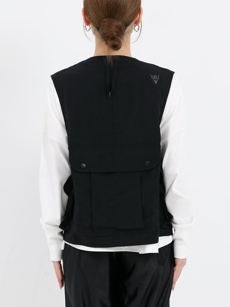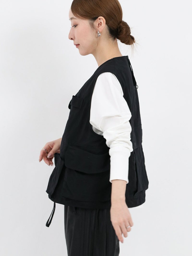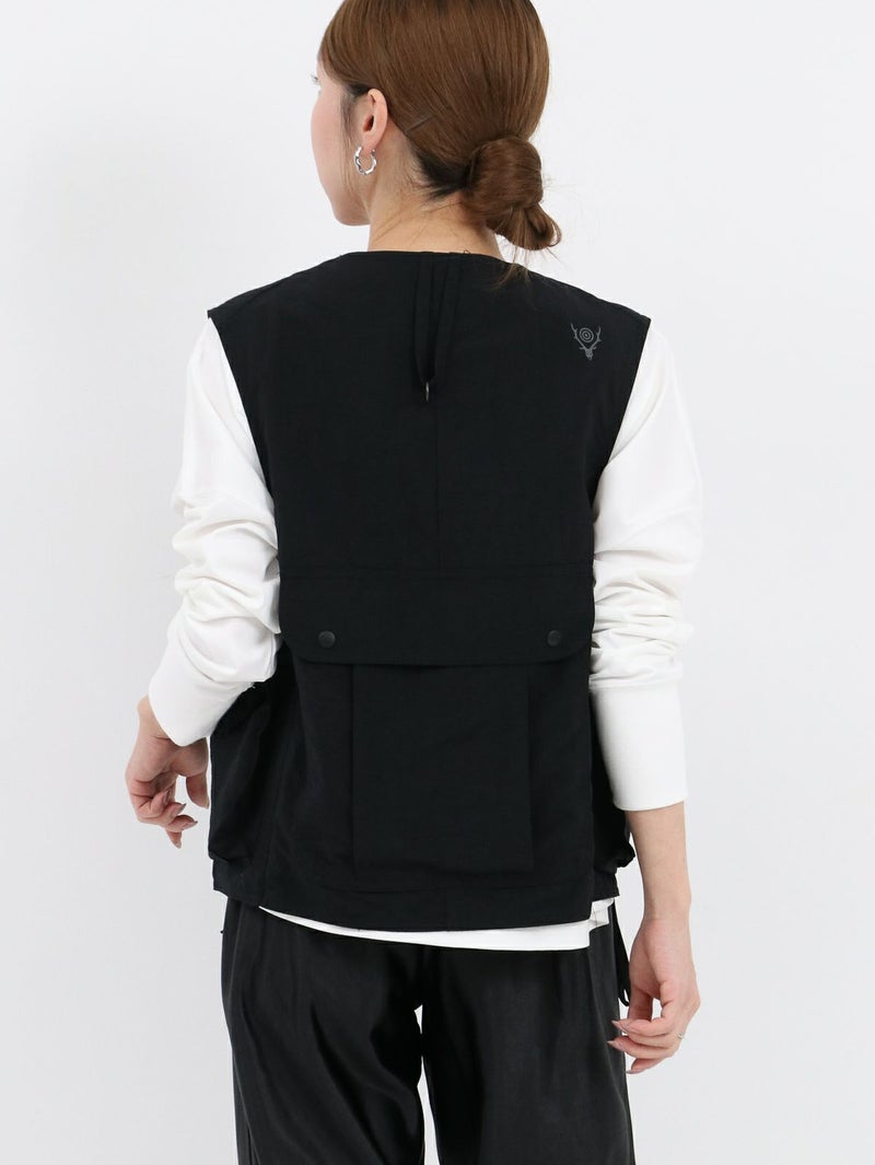 RONNIE SCOTT'S別注、South2 West8のTenkara Vest。 日本伝統の釣法テンカラにちなみデザインされたSouth2 West8の代表的なアイテムのひとつ。ゲームポケットをアレンジしたロッドホルダーなど、オリジナリティ溢れるデザインが光る逸品。 今回RONNIE SCOTT'Sでは、軽量かつ丈夫でシワになりにくい、ナイロンポプリンに落とし込んで製作。水や汚れに強いのも特徴です。生地が柔らかく、女性らしい雰囲気のお洋服とも相性◎ジャンル問わず、コーディネートのプラスアイテムとして活躍間違いなしです!