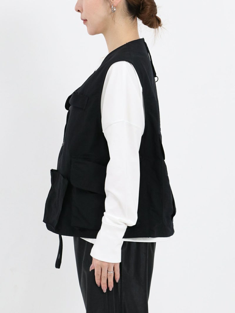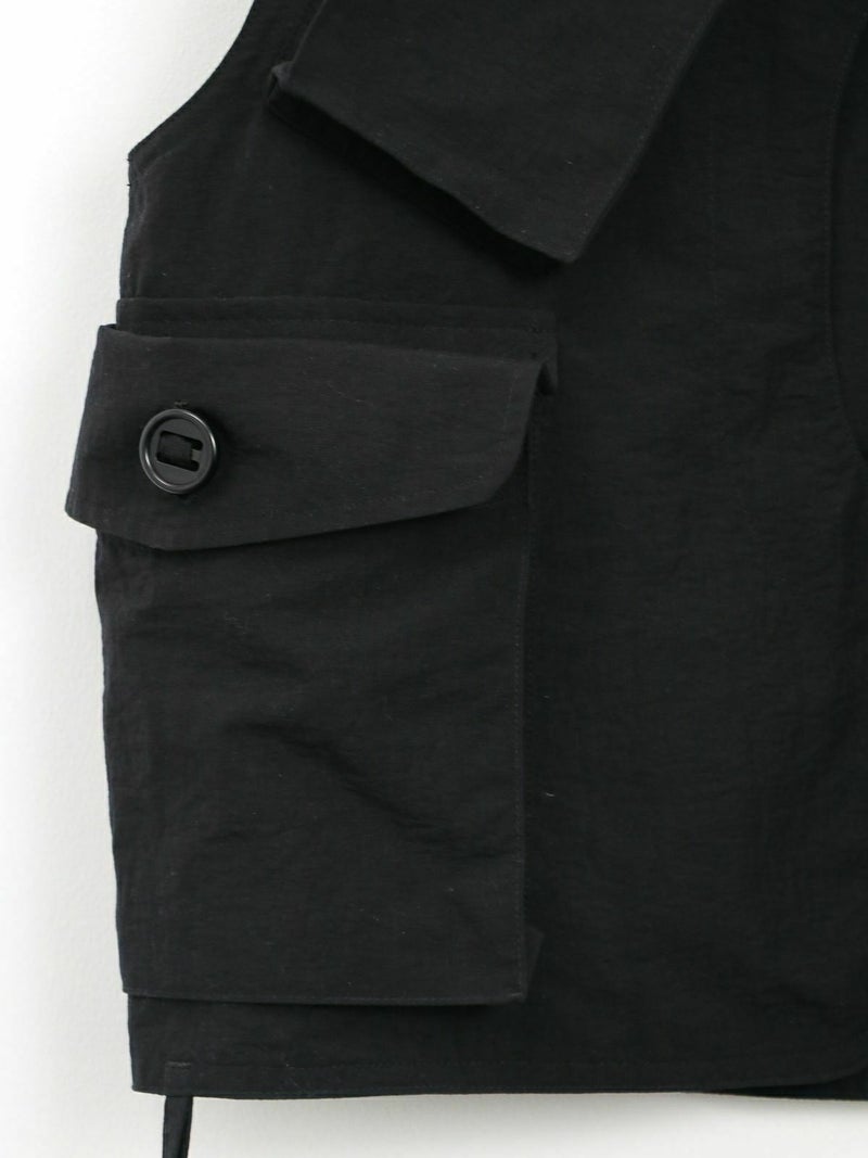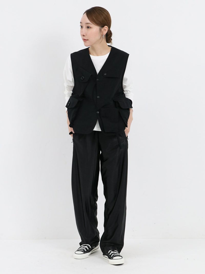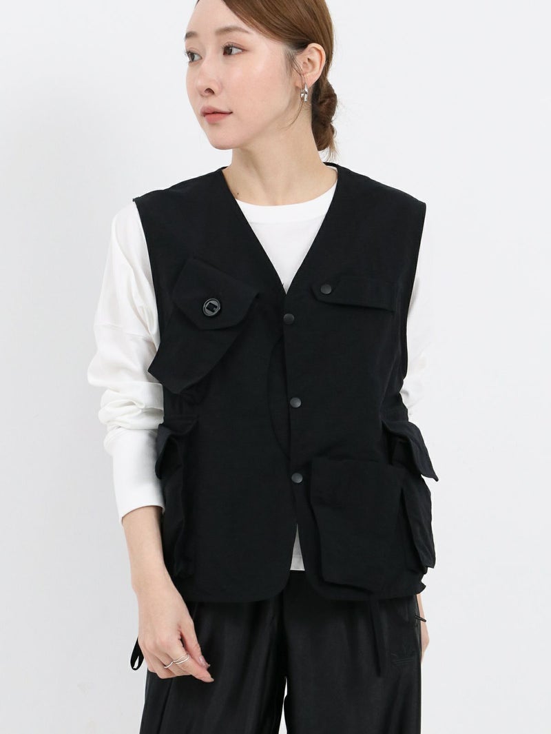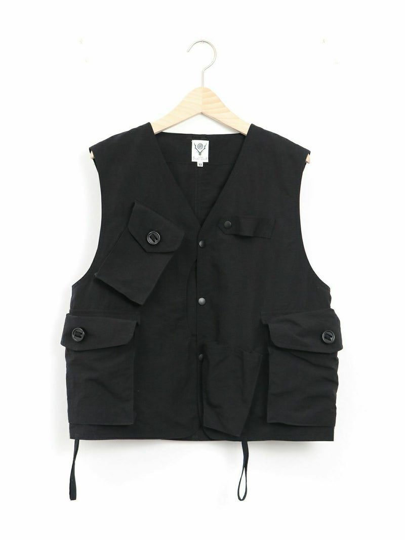 RONNIE SCOTT'S別注、South2 West8のTenkara Vest。 日本伝統の釣法テンカラにちなみデザインされたSouth2 West8の代表的なアイテムのひとつ。ゲームポケットをアレンジしたロッドホルダーなど、オリジナリティ溢れるデザインが光る逸品。 今回RONNIE SCOTT'Sでは、軽量かつ丈夫でシワになりにくい、ナイロンポプリンに落とし込んで製作。水や汚れに強いのも特徴です。生地が柔らかく、女性らしい雰囲気のお洋服とも相性◎ジャンル問わず、コーディネートのプラスアイテムとして活躍間違いなしです!