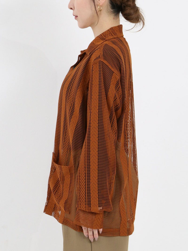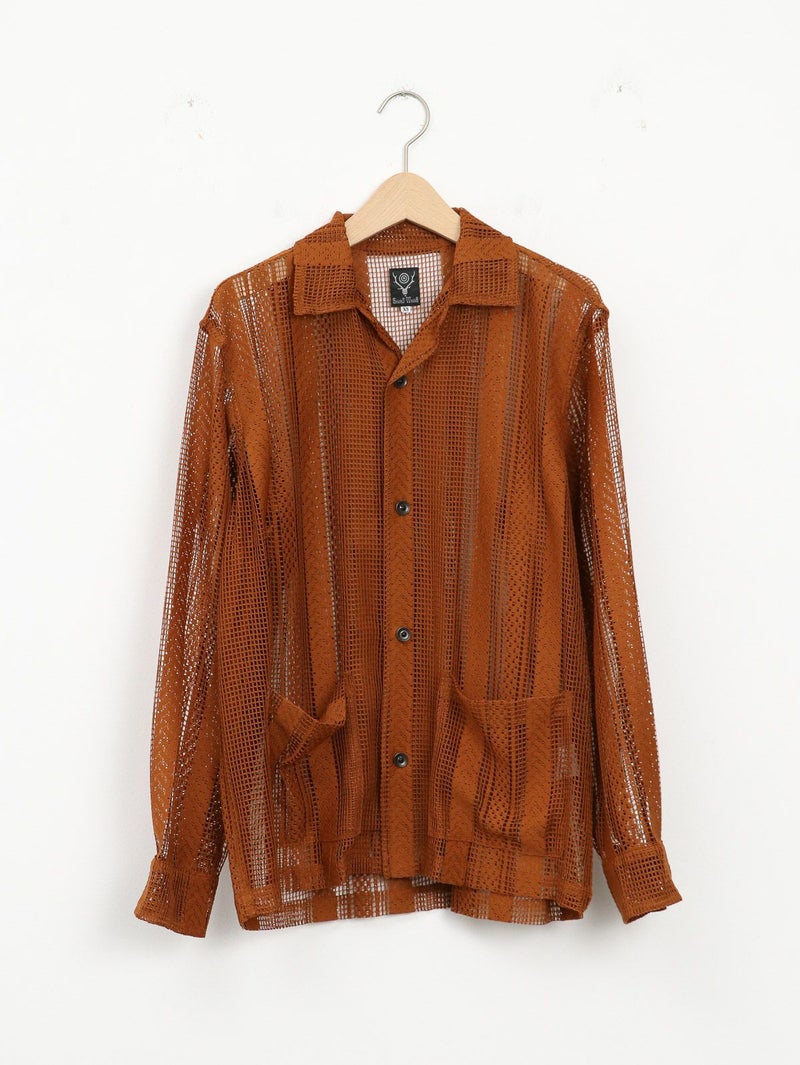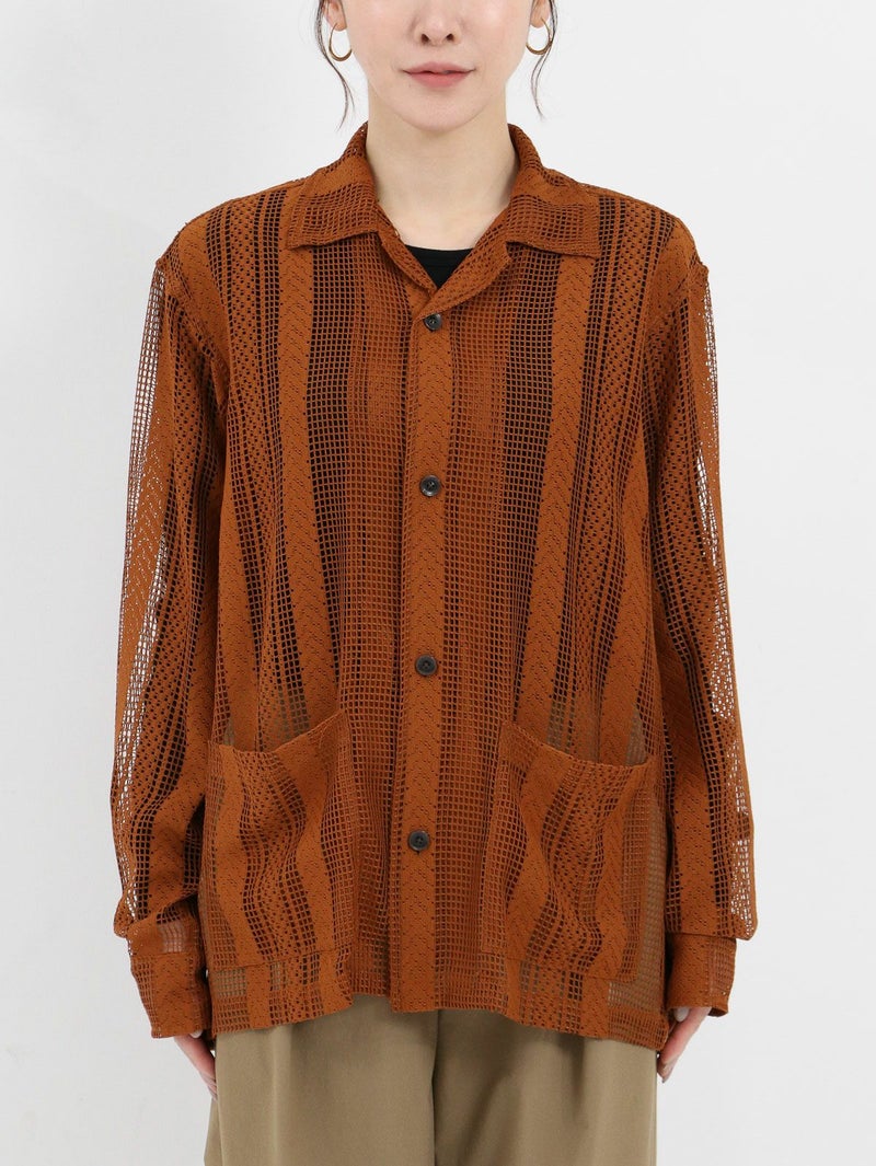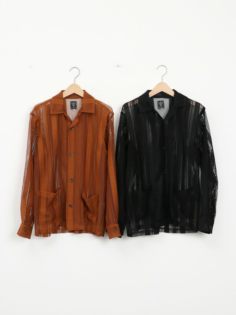 オープンカラーにワイドなボックスシルエット、シンプルながらリラックス感漂うデザインのカバナシャツ。 夏の定番としてリリースされていましたが、ロングスリーブとなって秋冬は登場です。立体感のあるレースは繊細な印象ですが、耐久性に優れたポリエステル素材を使用しタウンユースな一着に。透け感を活かしたユニークなレイヤードのスタイリングもお楽しみ頂ける、ファッション性にも富んだアイテムとなっています。