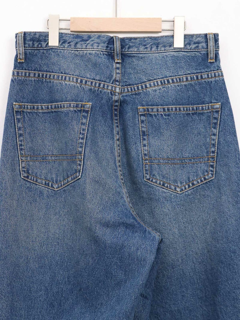 極太のシルエット、股上も深くルーズフィットで楽しんで頂ける定番ストレートジーンズ。 ウエスト裏にはドローコードを搭載しているのでノーベルトでもしっかりホールドしてくれます。ステッチピッチカウントも大きく取ることで表情が豊かなジーンズになりました。リアリティのあるダメージや色落ちでヴィンテージ感漂わせる1本に、14オンスで肉厚ながらしなやかな風合いに仕上げました。