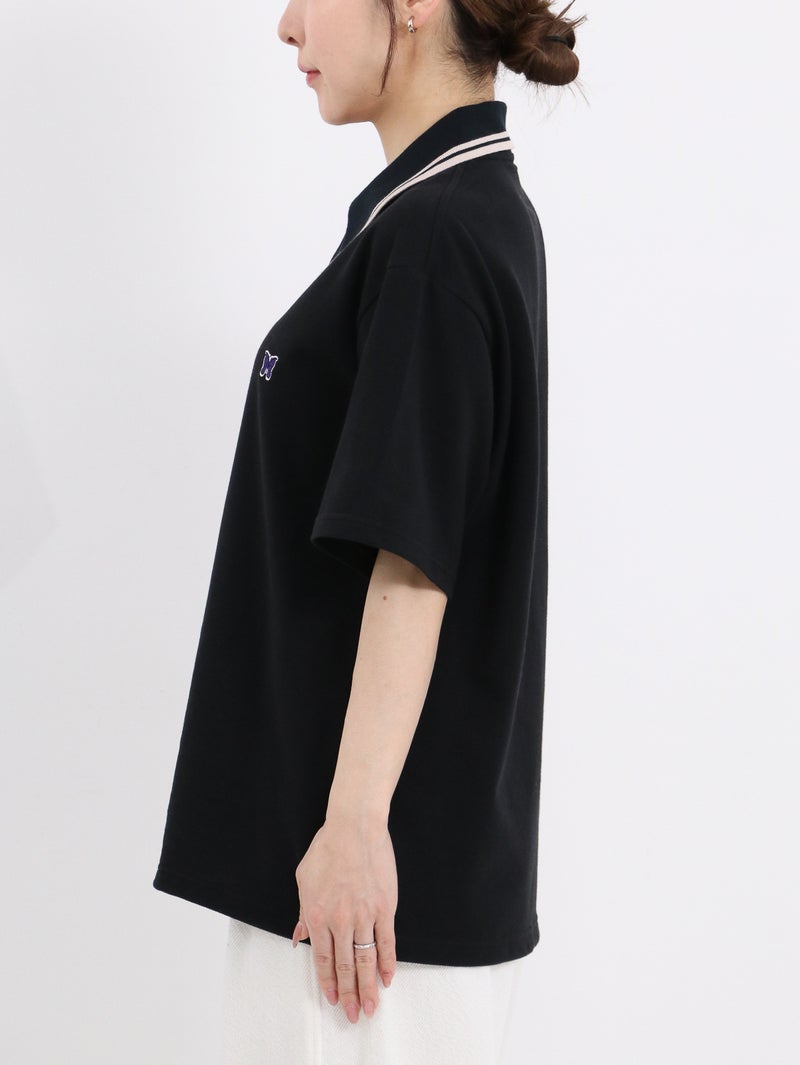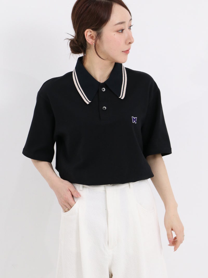 ベーシックな半袖ポロシャツ。 ややゆとりのあるシルエットにサイドスリット、左胸には蝶の刺繍が施されています。ポロシャツでは定番となっているコットンピケ素材を採用しており、さらりとしたドライな着心地となっています。シルエットは適度にゆとりのあるフィット感です。
