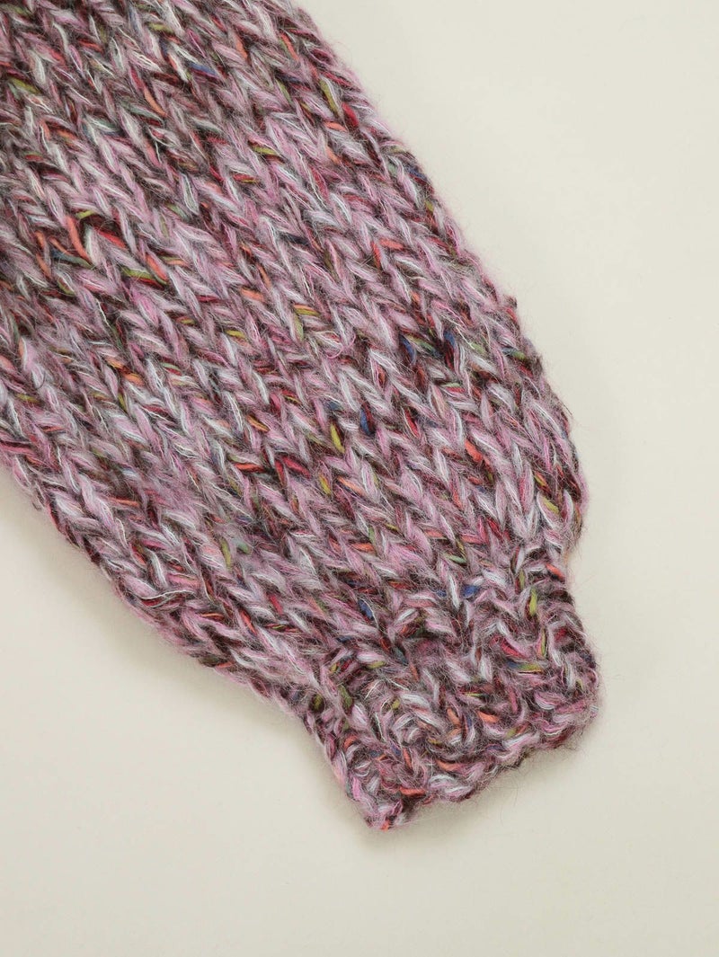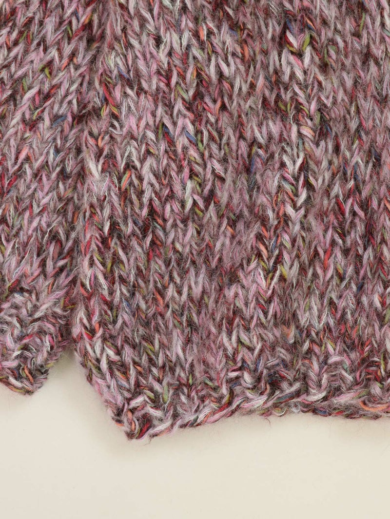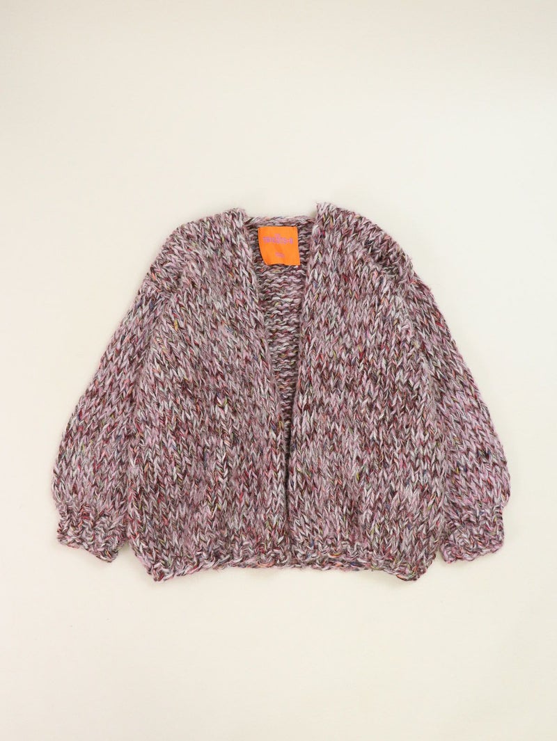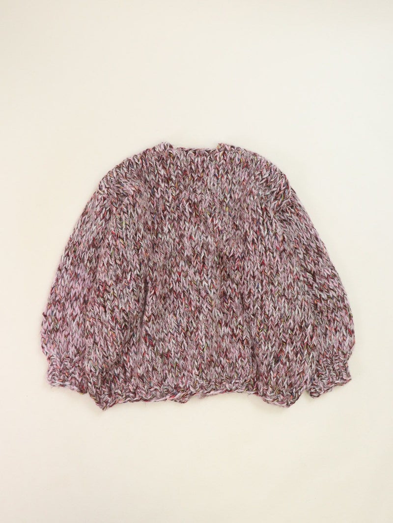 糸のグラデーションカラーが特徴的なショートカーディガン。 ざっくりとした厚手の編地は伸縮性がありほどよく透け感もあるので、インナーダウン等とのレイヤードスタイルで冬もコーディネートを楽しめる1着です。