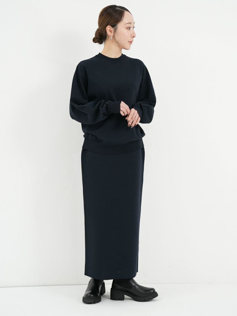 さらっとした表面感の天竺ホールガーメントプルオーバー。 詰まったネックシルエットがシックな印象に。万能に着まわしの効くデザインで、通勤にもおすすめ。同素材のスカートとセットアップでスタイリングできます。