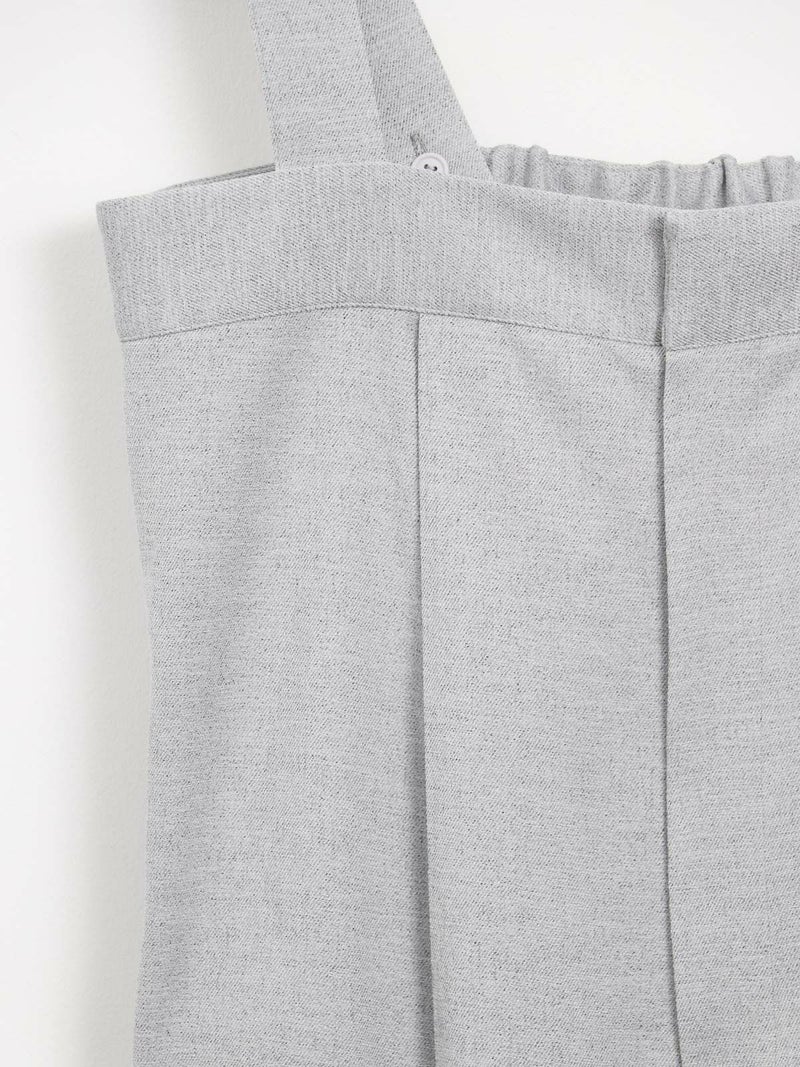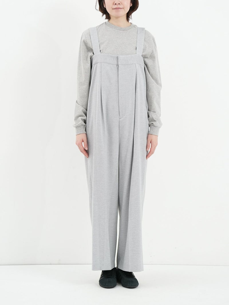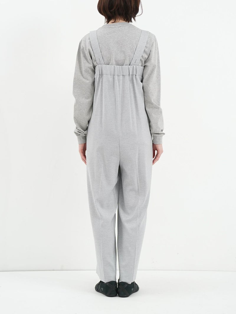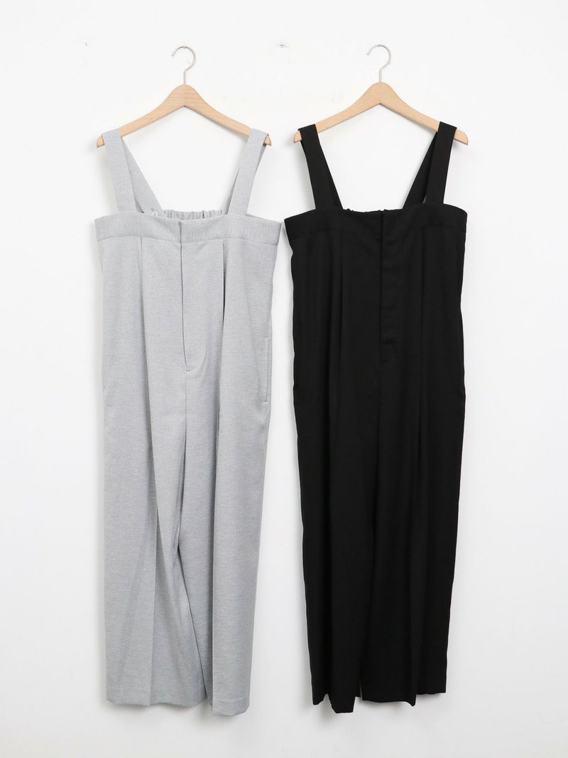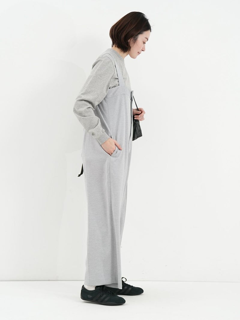 すとんと落ちるIラインシルエットのサロペット。 程よくゆとりのあるサイズ感で身体のラインを拾わず、リラックス感のある着心地です。シャリ感と少し光沢感のある生地で、キレイめな雰囲気にはもちろん、Tシャツなどと合わせてカジュアルな雰囲気にも◎