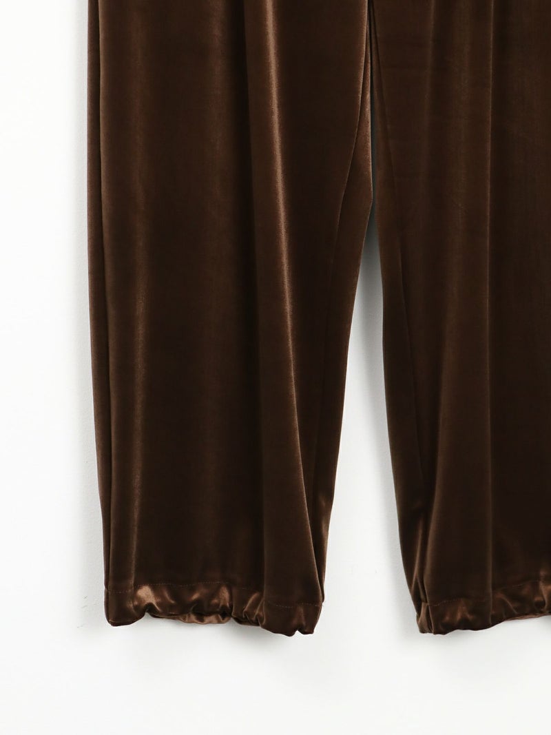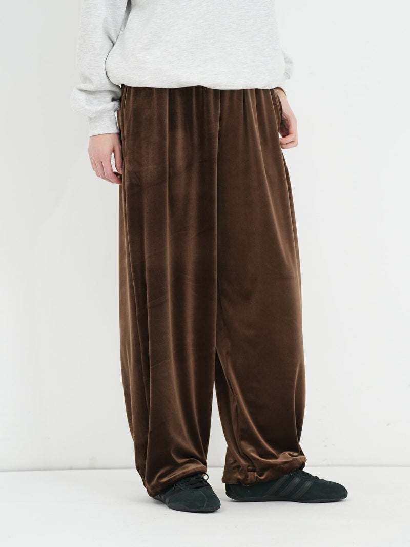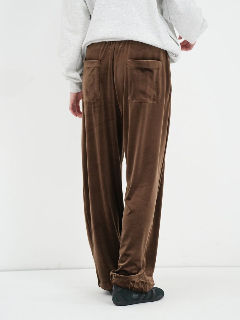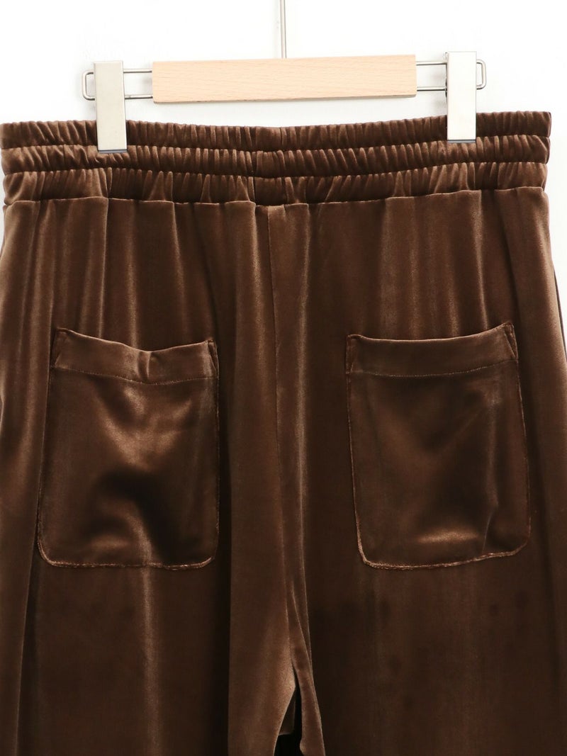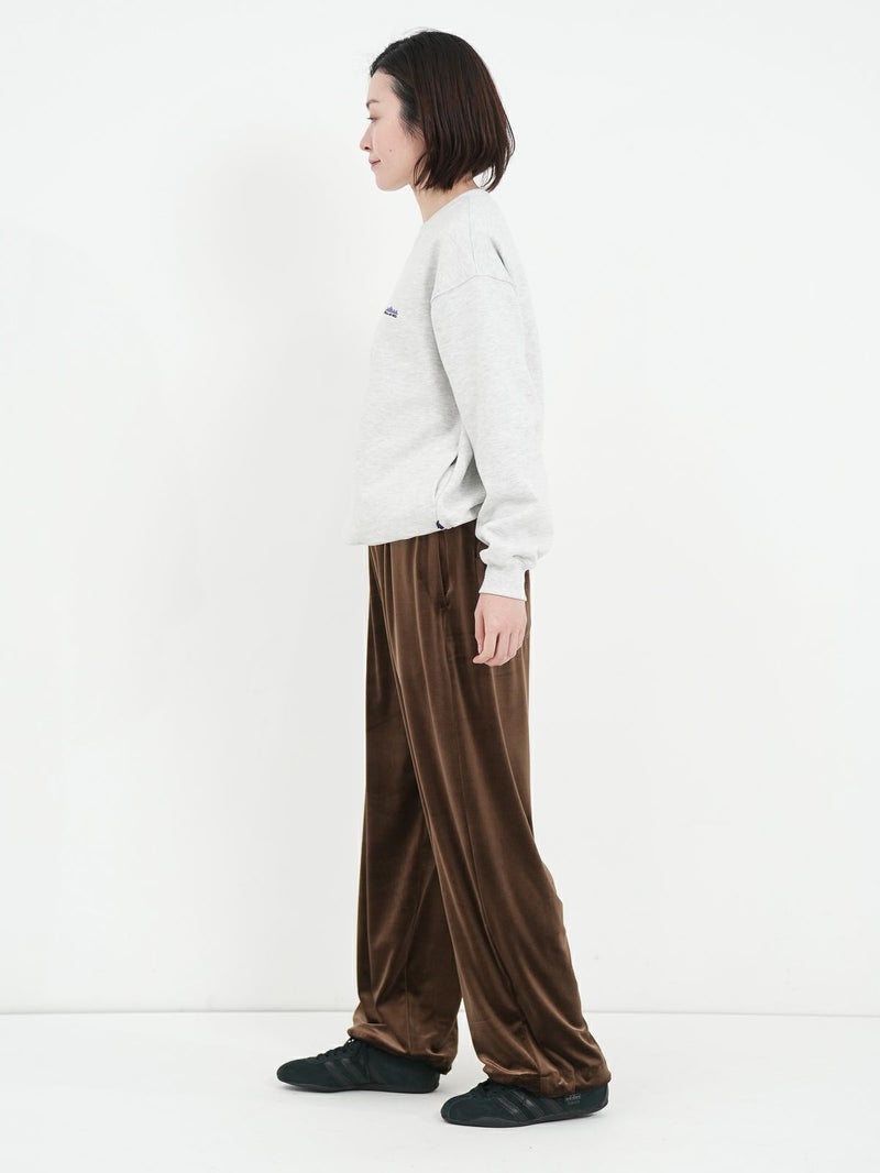 RONNIE SCOTT'Sオリジナルのスウェットワイドパンツが素材をベロアに変えて登場しました。上品な光沢感と、秋冬らしいベロア素材がシーズンムードを高めてくれる一枚です。
