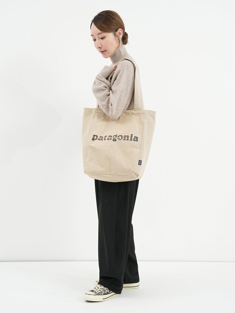 patagonia(パタゴニア) リサイクル・マーケット・トート。 アップライザル製品の端切れと回収ペットボトルを100%使用したリサイクル素材で作られたトートバッグです。肩掛けもできる長めの持ち手とA4サイズが入る大きさで、通勤・通学やお出かけ、お買い物、サブバッグやエコバッグとしても活躍。フェアトレード・サーティファイドの縫製を採用した、環境に配慮されたアイテムです。