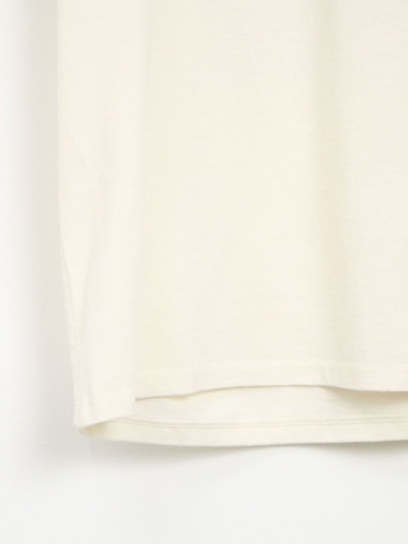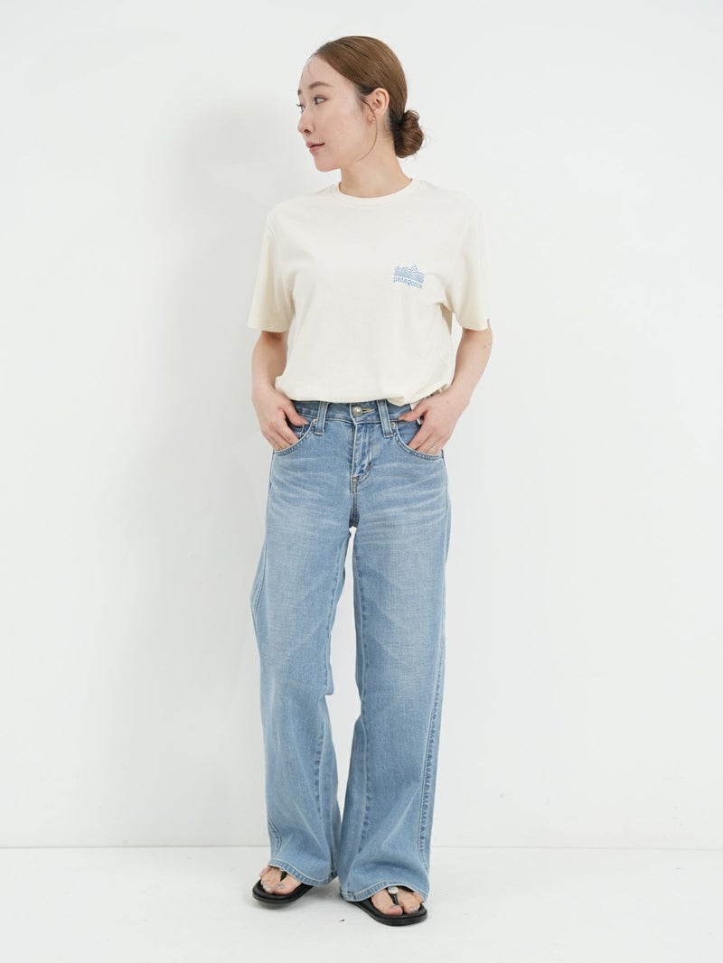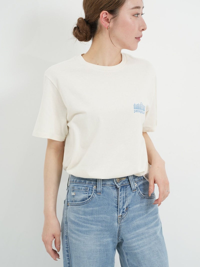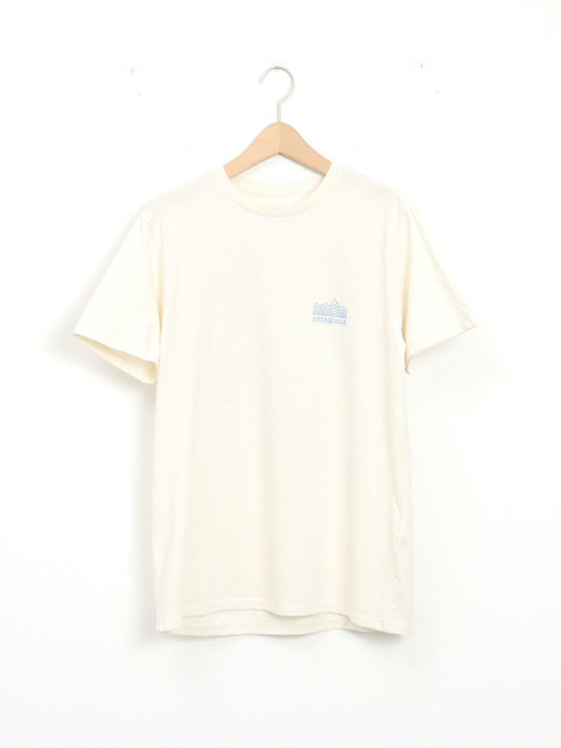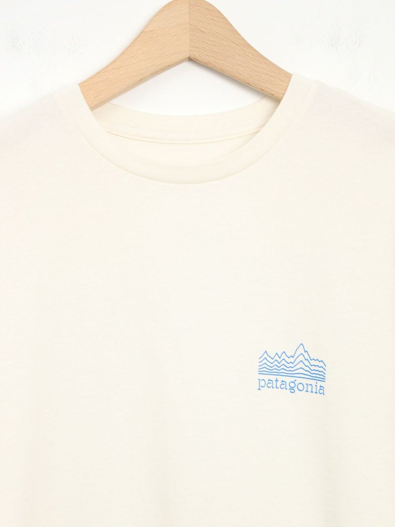 リサイクル素材でつくられたTシャツ。 雲海の上に浮かぶフィッツロイを線だけで表現したシンプルな1枚。ボトムにインしてもそのままでも着用可能なストレートな裾で幅広いコーディネートに馴染みます。工場の従業員にプレミアム賃金が支払われるフェアトレード・サーティファイドの工場で製造されています。