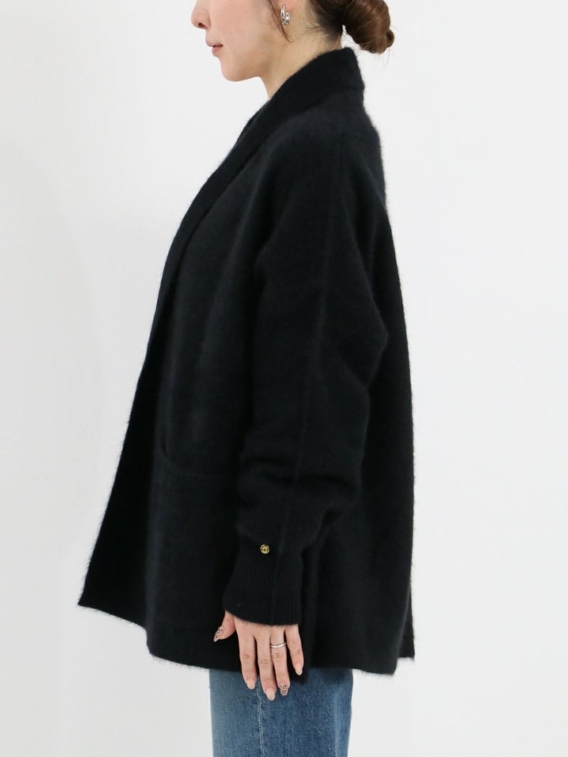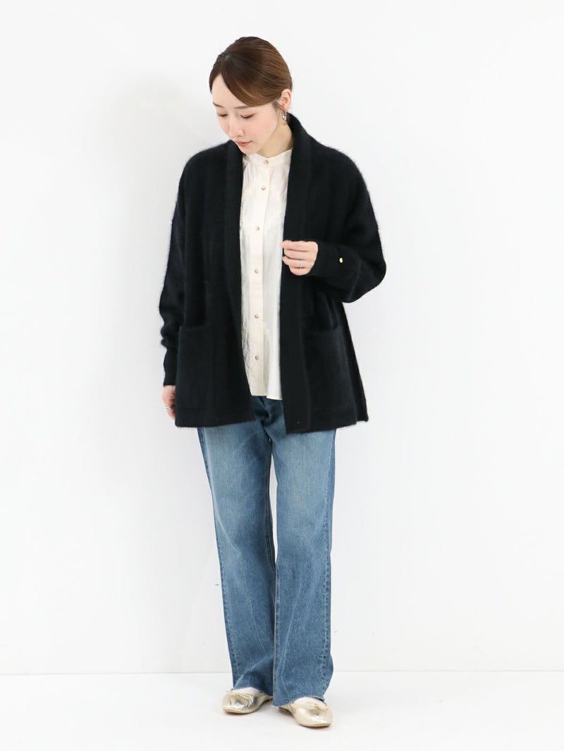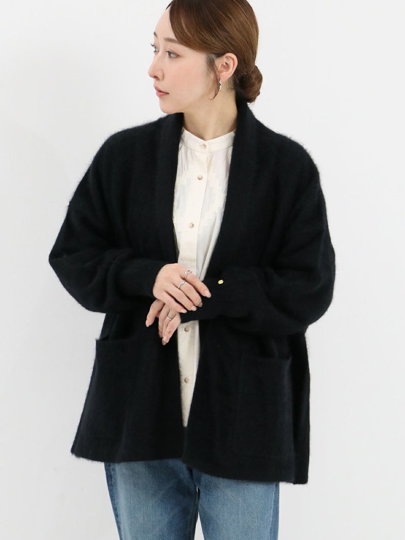 フォックスとアルパカをブレンドした、ふんわりとやわらかなニットカーディガン。 羽織っていることを忘れるほど軽く、包み込まれるような心地よさが魅力です。程よくゆとりがあり、どんなスタイリングにも合わせやすいバランスです。シンプルながら素材の上質さが引き立つ、一枚あると便利な万能カーディガンです。