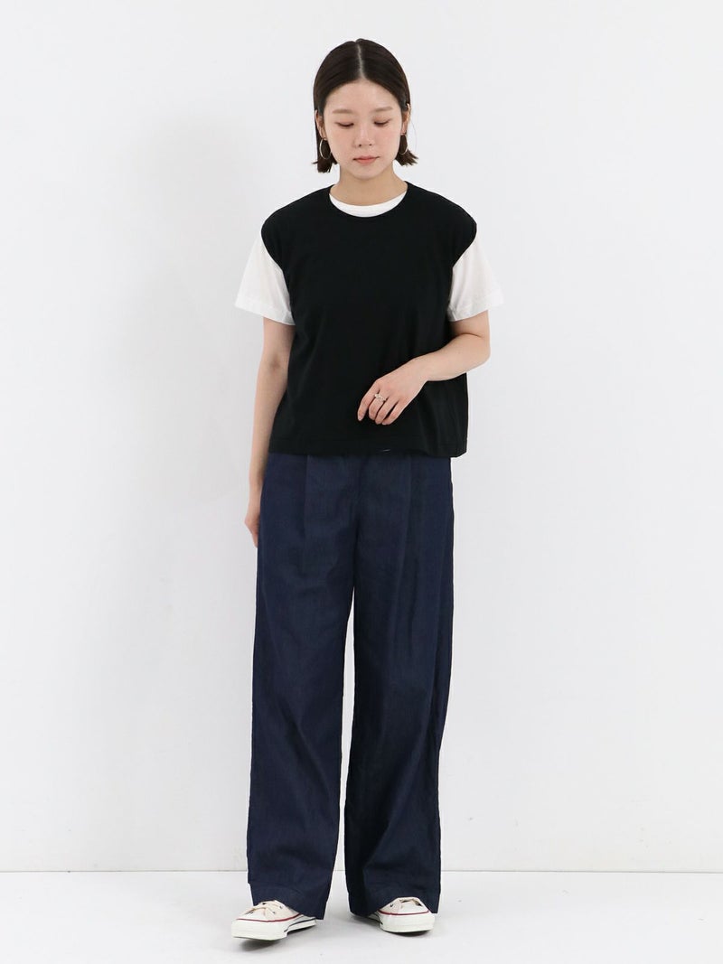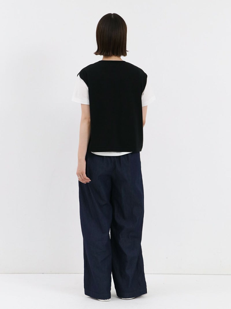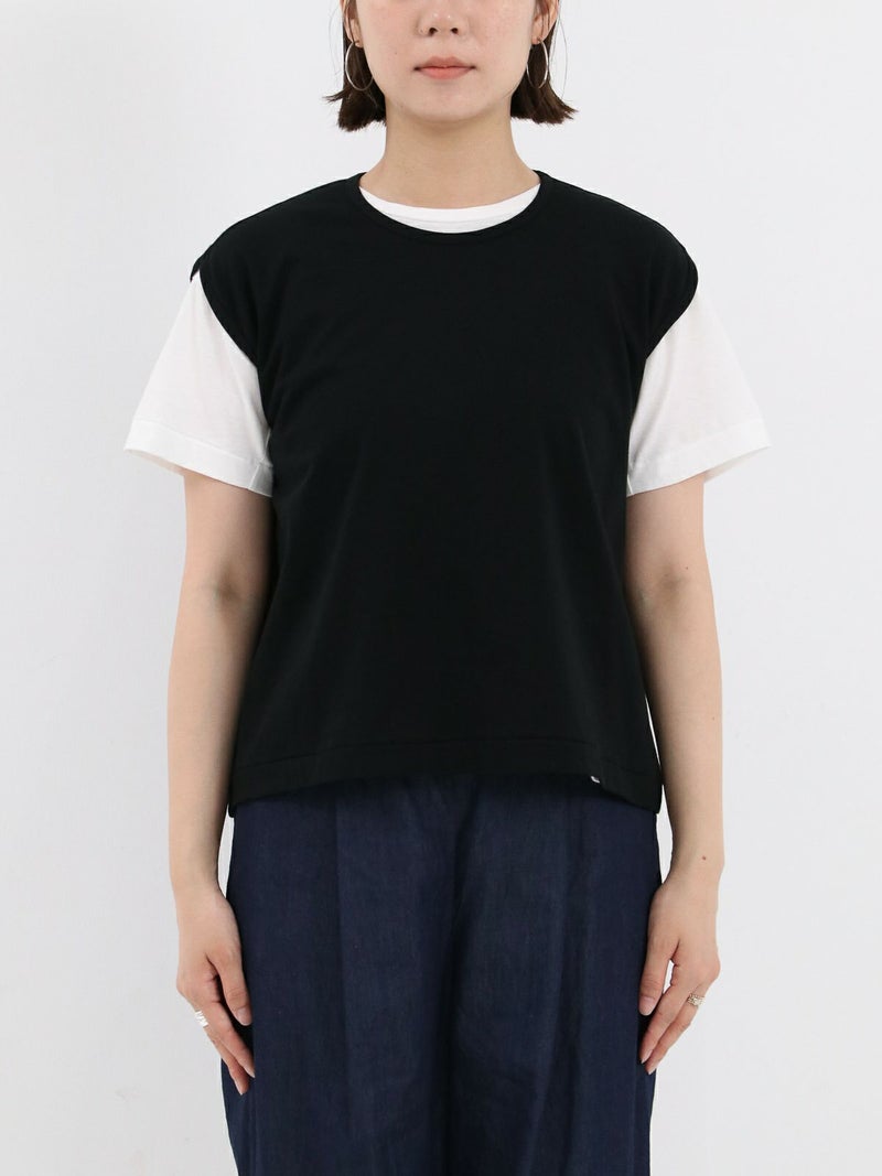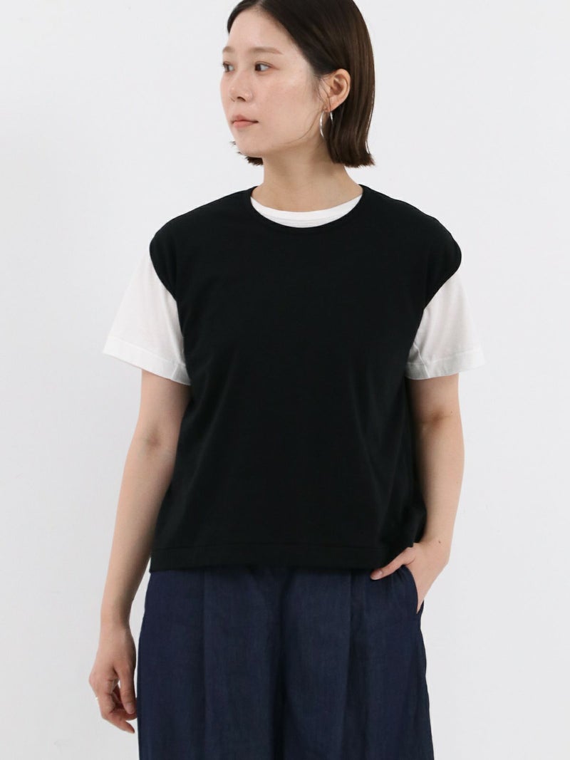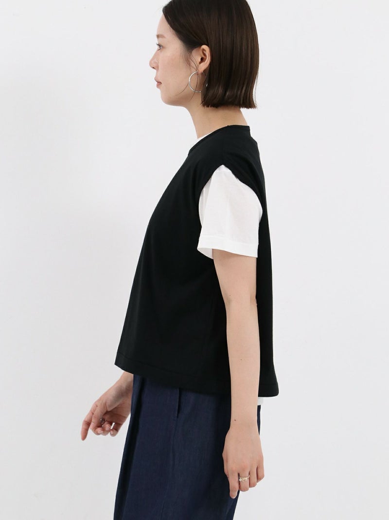 ハイゲージ天竺ジャージ素材のコットンノースリーブ。 やわらかく肌になじむ100%コットン素材を使用し、軽やかでやや光沢感がありキレイめな印象。 程よいサイズ感で腕部分はややカーブのあるデザインがポイント。多様なスタイルに合わせられるシンプルさが魅力です。