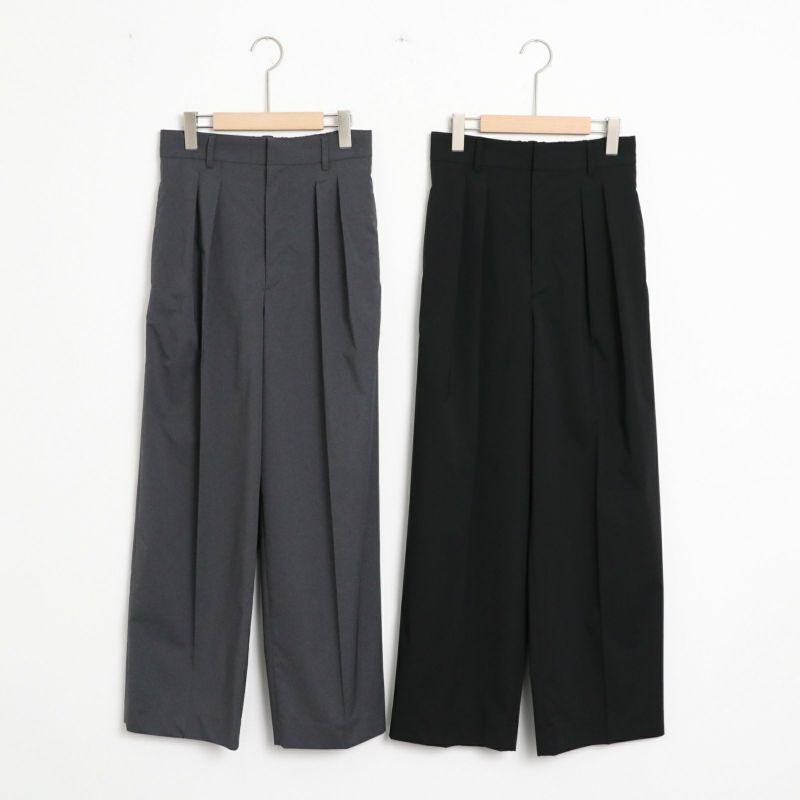AQUAFITSのストレートパンツ。 ポリエステル100%素材で、軽い着心地。2タックシルエットで、キレイめにもカジュアルにも使えるボトムです。