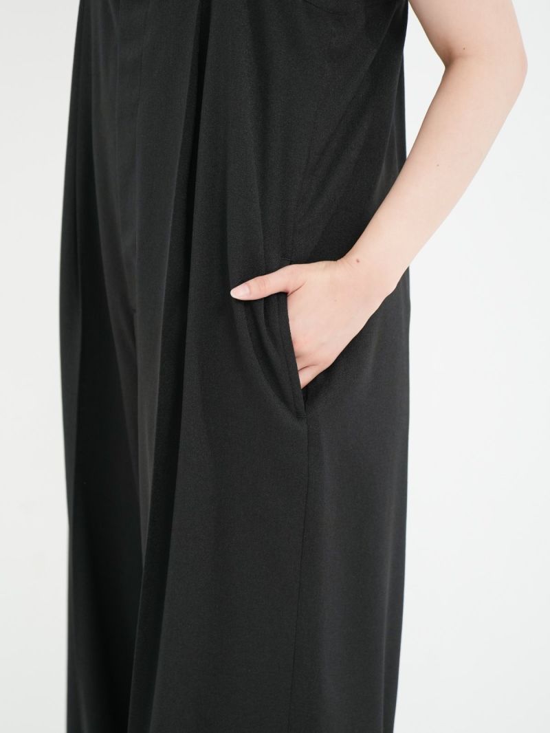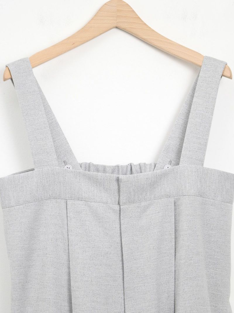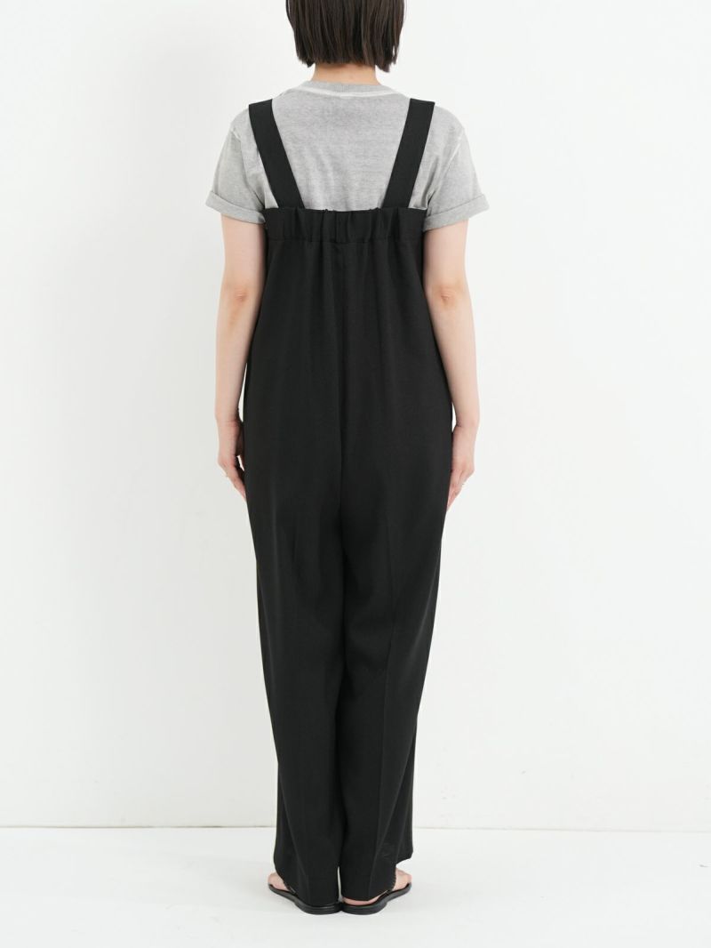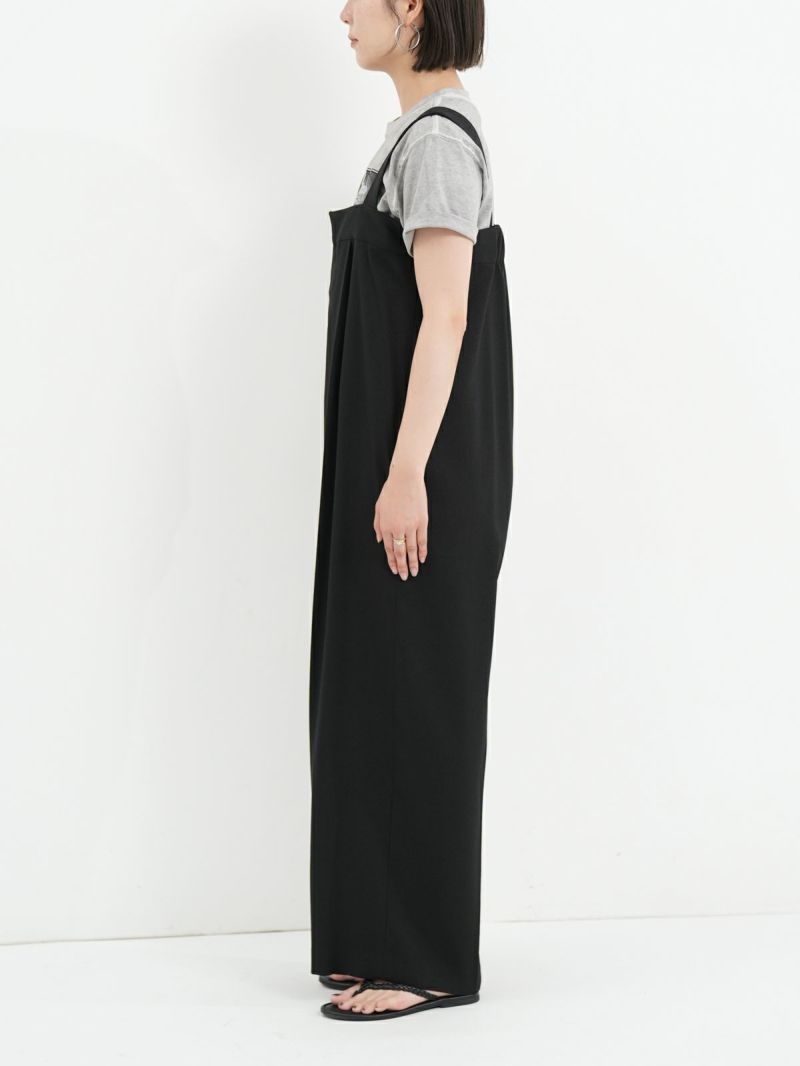 すとんと落ちるIラインシルエットのサロペット。 程よくゆとりのあるサイズ感で身体のラインを拾わず、リラックス感のある着心地です。シャリ感と少し光沢感のある生地で、キレイめな雰囲気にはもちろん、Tシャツなどと合わせてカジュアルな雰囲気にも◎