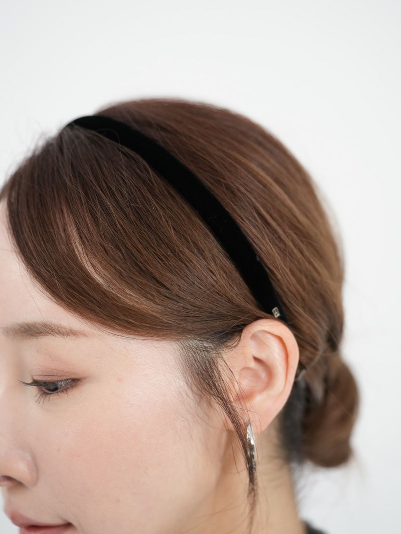ALEXANDRE DE PARIS定番のベロアカチューシャ。 ベロア独特のマットな艶が上品なイメージに仕上げてくれるアイテム。 オンオフ問わず使いやすいため、一つ持っておくと便利なスリムタイプです。