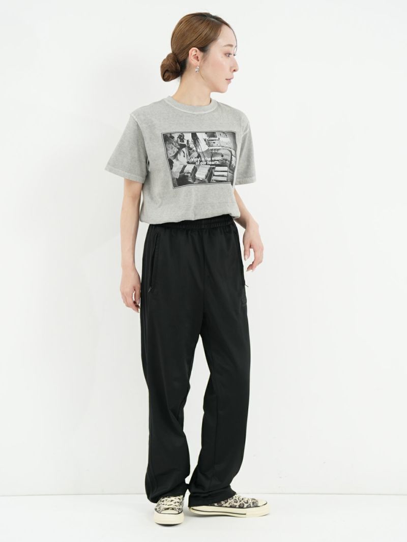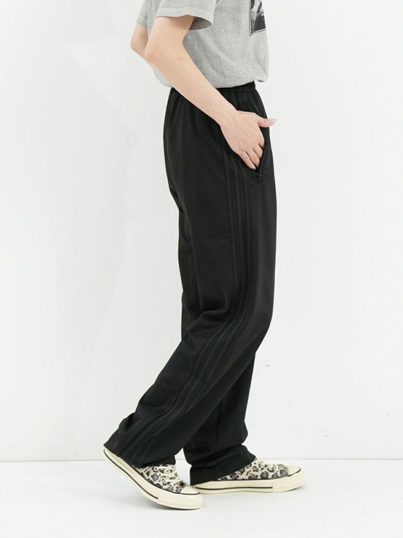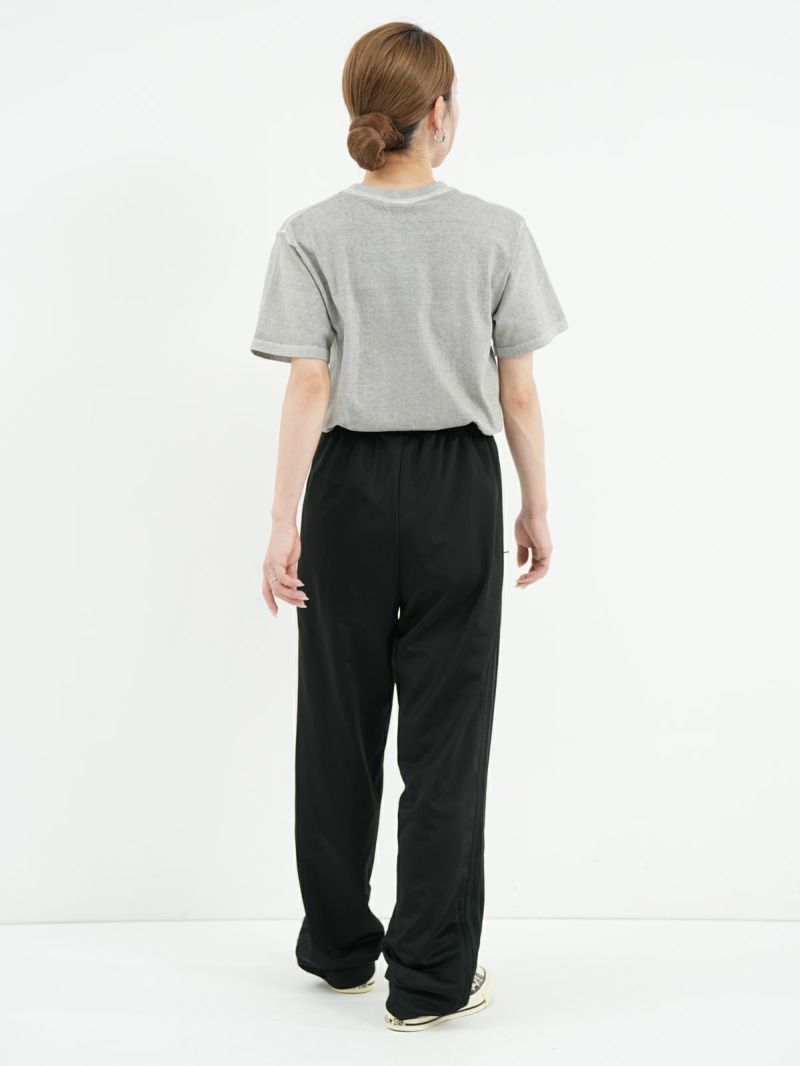 サイドのラインが同色になっており、カジュアルからモードなスタイルまで幅広いシーンとスタイルで活躍します。 シルエットは裾まですとんと落ちるスッキリとしたストレートシルエットです。