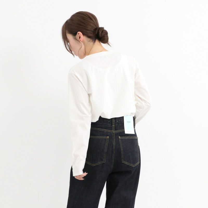 伸縮性に優れ、さらりとした肌触りで着心地も抜群。ベーシックなので着まわしが効き、シーズン長くお使いいただけます。秋冬シーズンはニットや羽織りもののインに重宝するアイテムです。