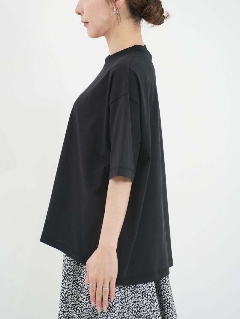 ゆったりとしたサイズ感のシンプルなスリットTシャツ。 ほんの少しAラインにしたシルエットがポイント。真夏でも着やすい乾きやすく肌当たりがさらりと涼しい素材を使用。型崩れしにくいところも◎