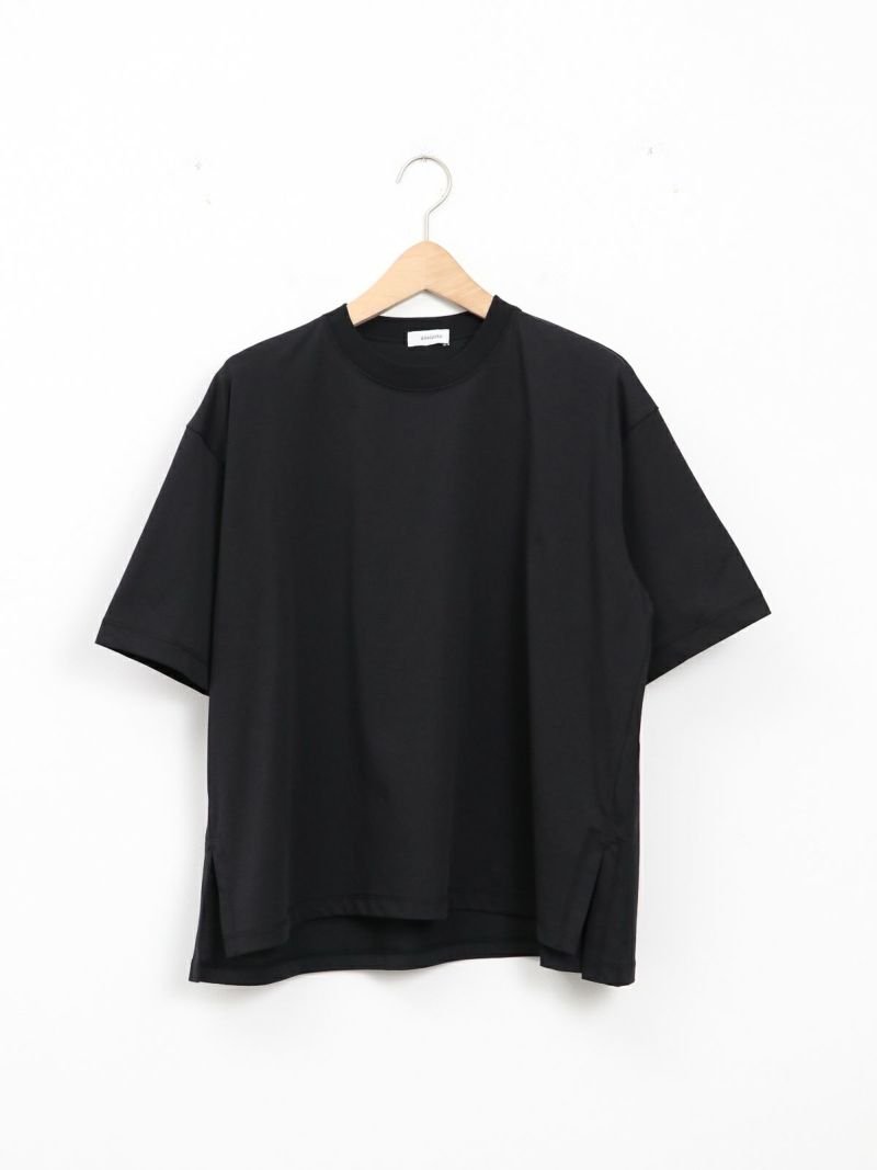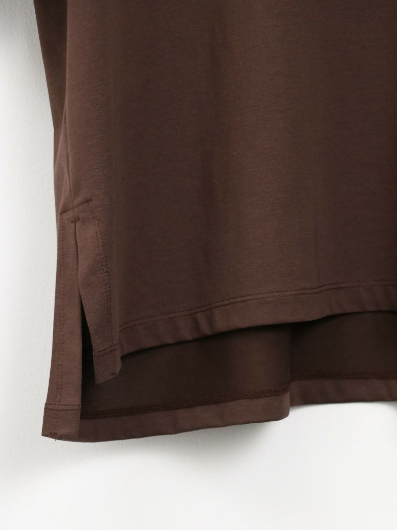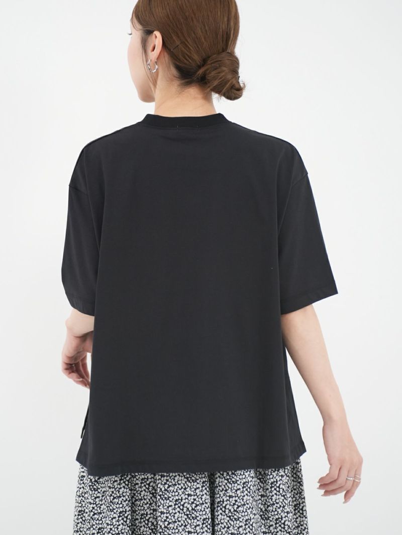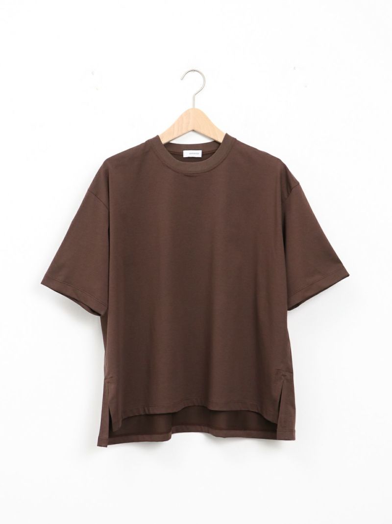 ゆったりとしたサイズ感のシンプルなスリットTシャツ。 ほんの少しAラインにしたシルエットがポイント。真夏でも着やすい乾きやすく肌当たりがさらりと涼しい素材を使用。型崩れしにくいところも◎