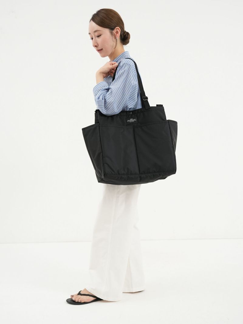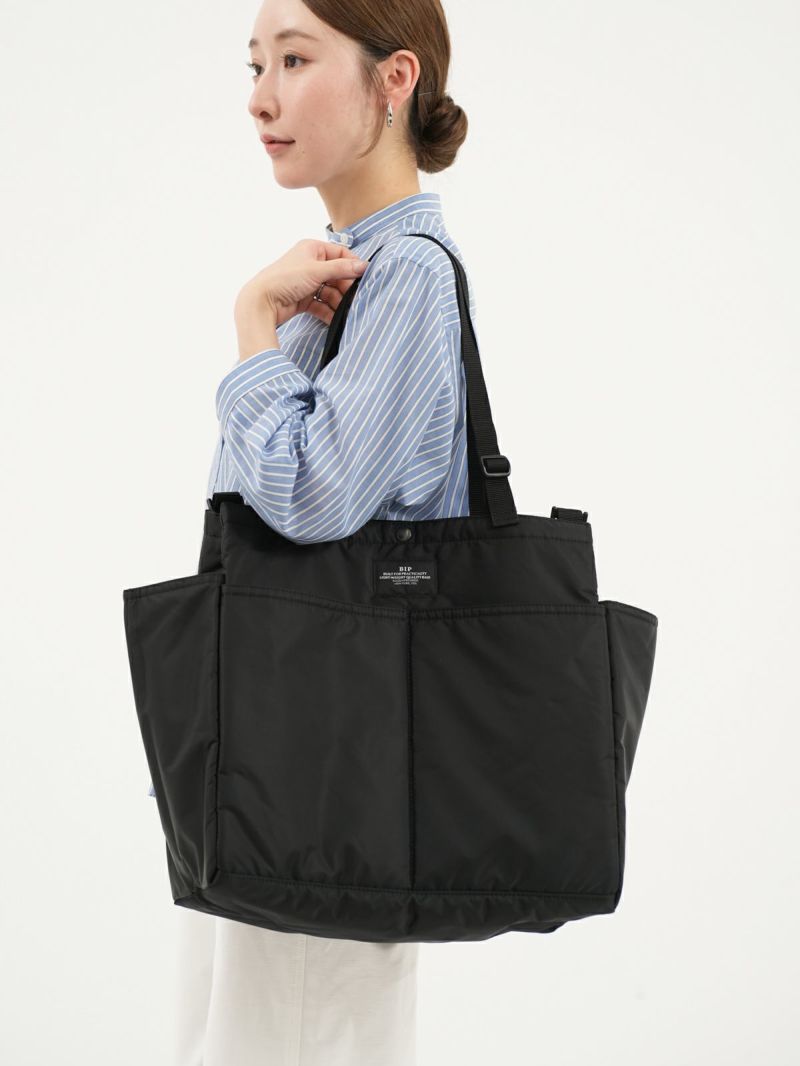 BAGSINPROGRESSの定番モデル『Carry-all Beach Bag』。 フロントと内側に便利なポケットが充実したトートバッグはデイリーからご旅行、お出かけまであらゆるシーンにおすすめ。 ハンドストラップは、長さを調整することで、肩掛けと手持ちとアレンジが楽しめます。取り外し出来るショルダーストラップ付きで斜めがけも可能。底マチ広めでA4サイズも入る大きめなサイズ感がお仕事にも活躍しそうなバッグです。 ※実際の色味は商品単体の写真が実物に近いです。