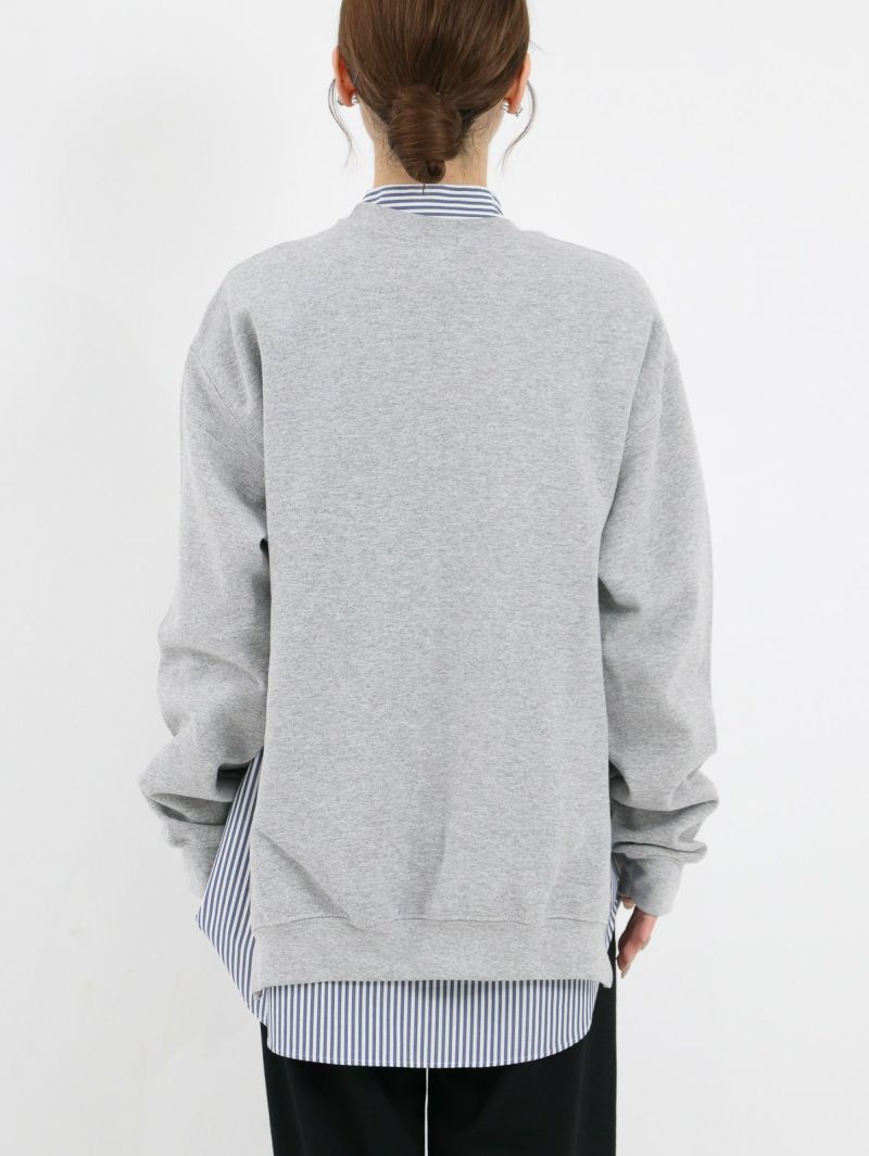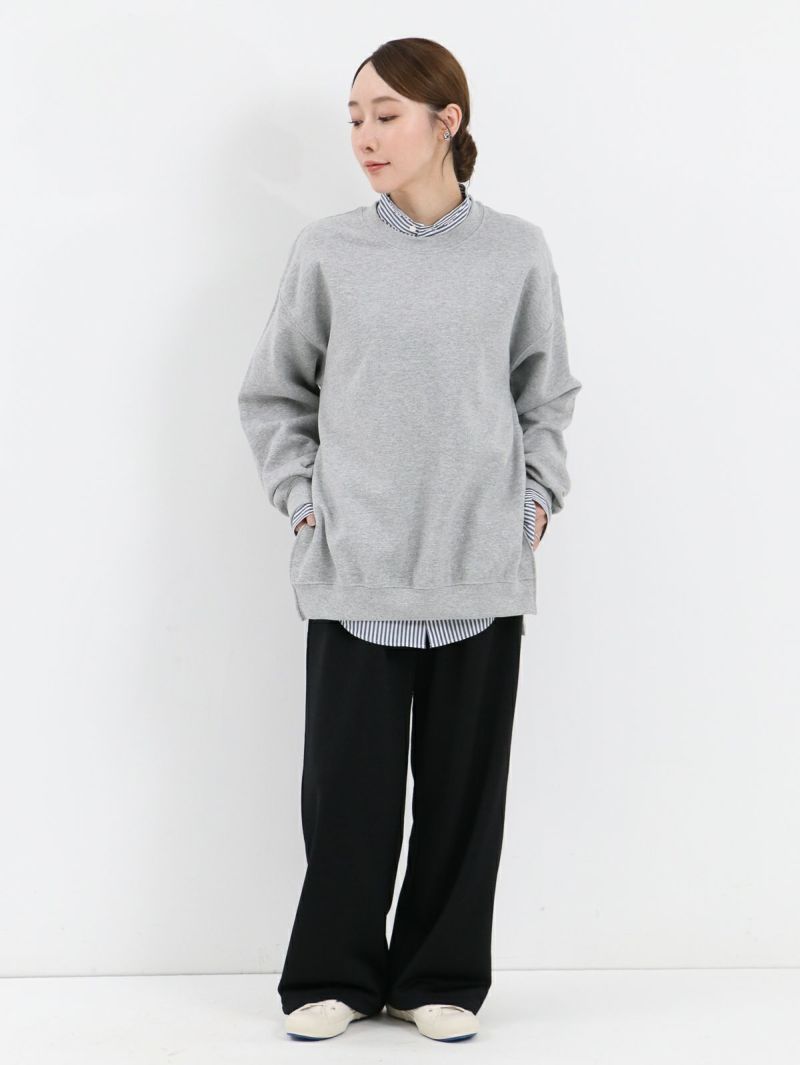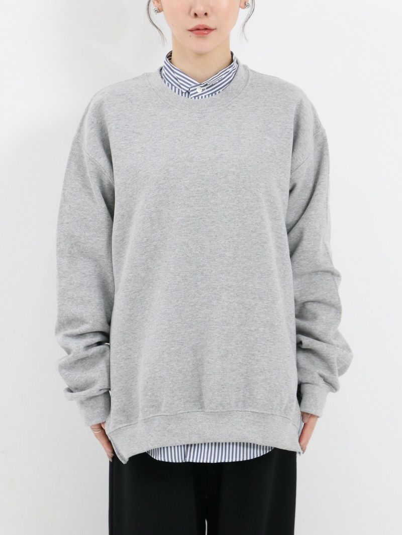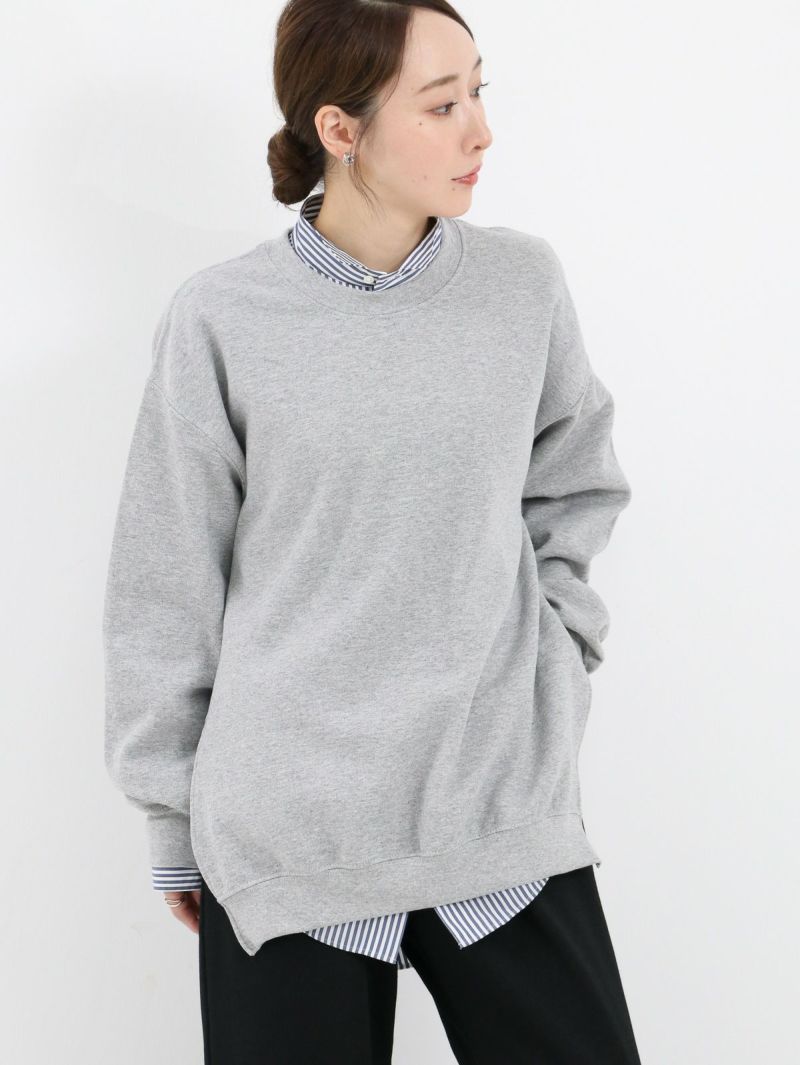 両サイドに深くスリットの入ったスウェットトップス。 コットン/ポリエステルの軽く暖かい裏起毛です。シャツやカットソーをレイヤードしたり、ワンピースの上に被って着たりと幅広いコーディネートに活躍します。