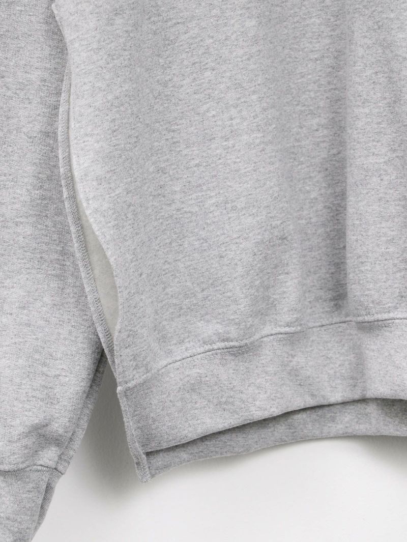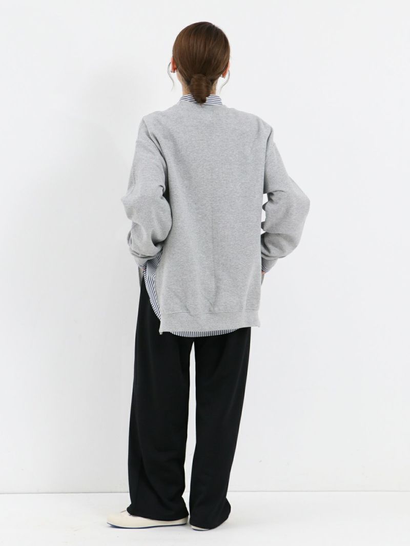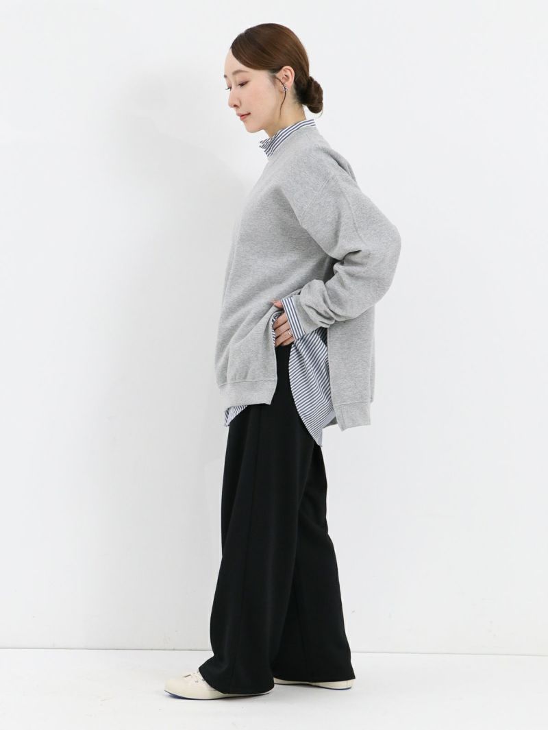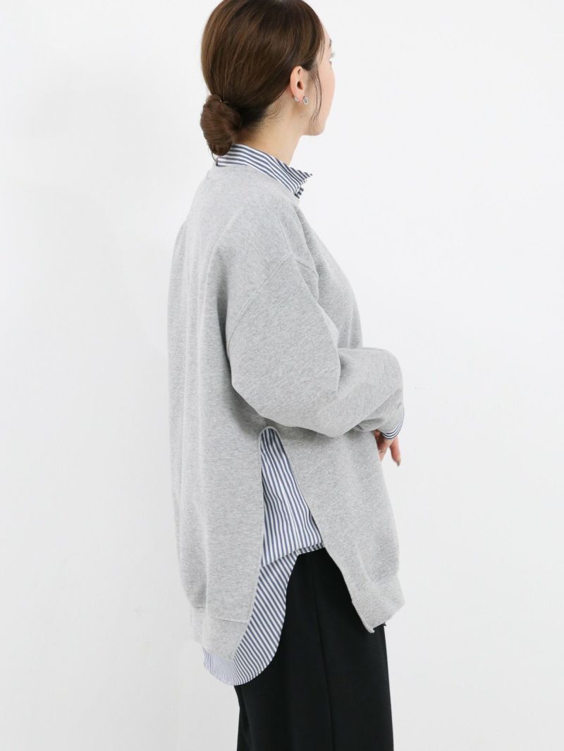 両サイドに深くスリットの入ったスウェットトップス。 コットン/ポリエステルの軽く暖かい裏起毛です。シャツやカットソーをレイヤードしたり、ワンピースの上に被って着たりと幅広いコーディネートに活躍します。