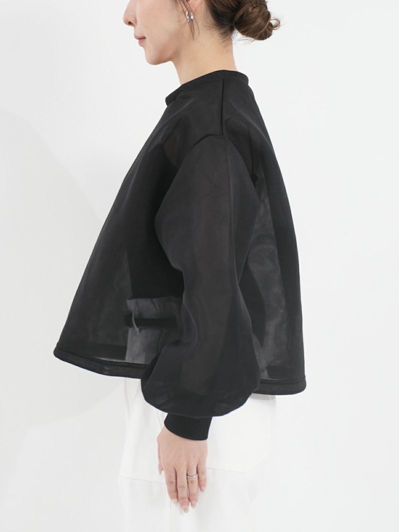シアー感のあるダンボール素材を使ったロニースコッツ別注トップス。 シンプルな形ですが、立体感と程よい厚みで1枚でも様になります。インナーにキャミソールやカットソーなどを重ねて長いシーズン着用頂けます。