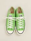 アッパーはデッドストックにありそうな発色の良いマスカットグリーン。ヒールラベルの下部に印字した「MADE IN JAPAN」の文字、日本国旗をイメージしてホワイトキャンバスに赤字で印したインソールのコンバースロゴが特別感を演出しています。国産のオリジナルカートン仕様の限定生産アイテムです。