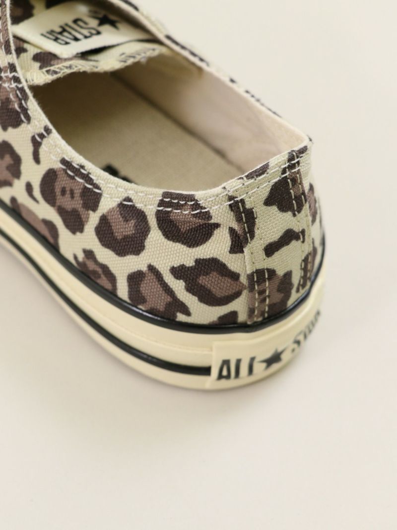 ややフェイドしたような色味のレパード柄を採用し、濃い生成りのテープとシューレースを採用することで自然に経年したかのような雰囲気に仕上げたデザインです。存在感のあるデザインながら、コーデに取り入れやすいカラーリングが魅力の一足。
