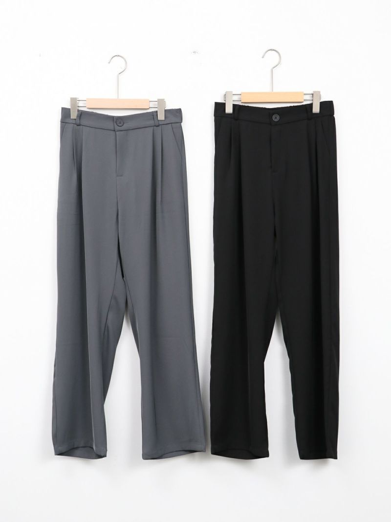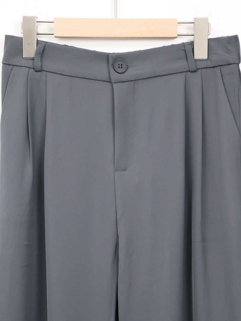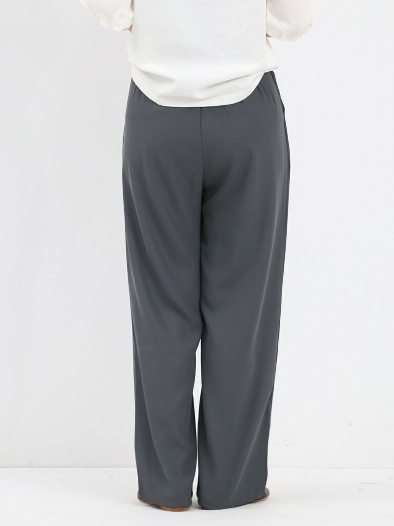 とろんとした素材が魅力のタックパンツ。 ウエストは後ろゴム仕様で履き心地も抜群。お仕事から普段着まで幅広く使える一枚です。