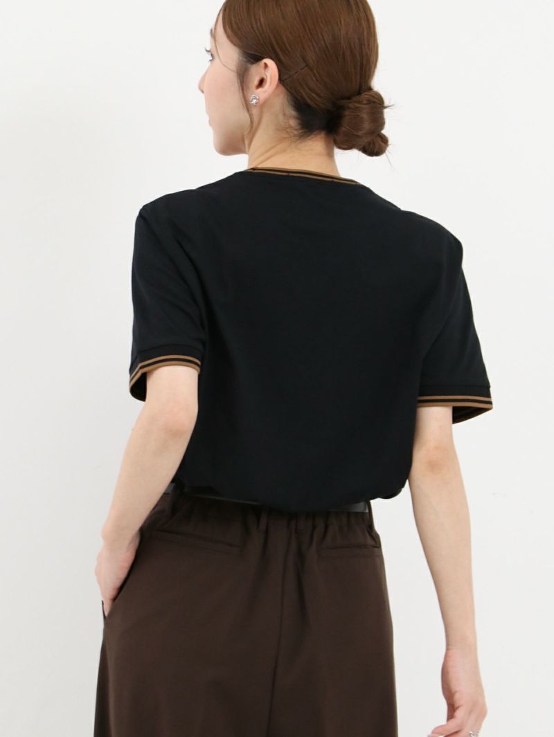 ネックと袖リブにフレッドペリーのシグニチャーであるティップラインを施したクルーネックTシャツ。 コットン100%のきれいめな細番手の糸を高密度で編み立てたソフトでリッチな素材を使用しています。