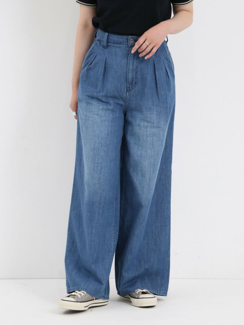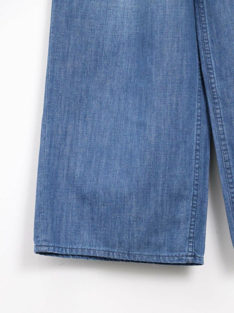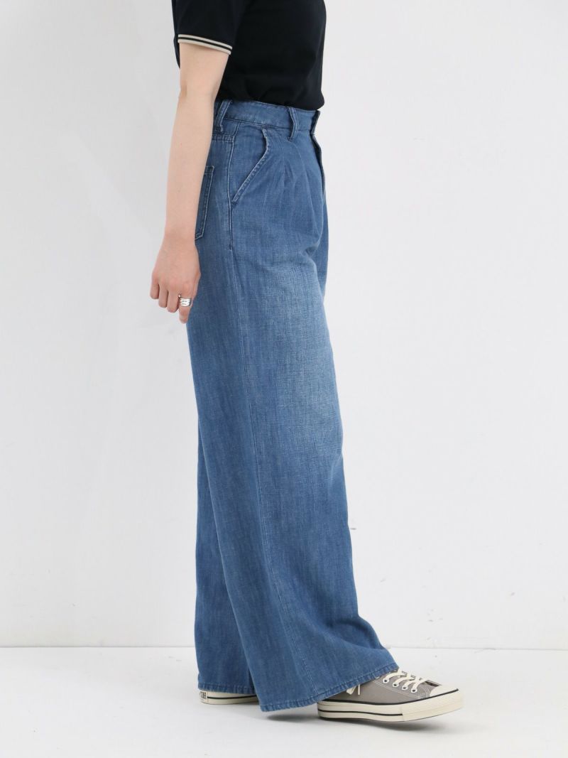 Healthy denimから2タックデザインのワイドパンツが入荷。 コットンリネン素材のライトオンスの生地を使用しているため、ボリューム感がありながらも裾幅広く風通しが良いので真夏もべたつかず快適に着用いただけます。Tシャツやリネンシャツに合わせるのがオススメです。